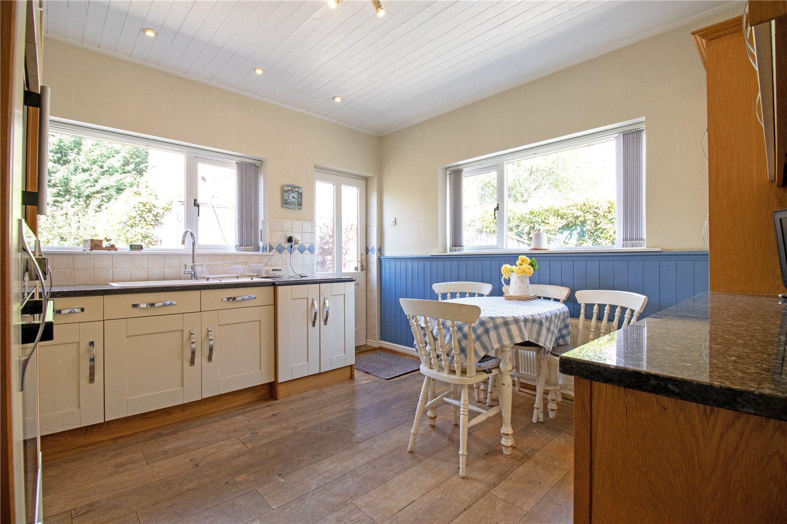 The property itself briefly comprises: a welcoming entrance hall, a generously sized lounge with dual-aspect views, a modern fitted dining kitchen, a bright and airy garden room, two double bedrooms, and a well-appointed bathroom suite.