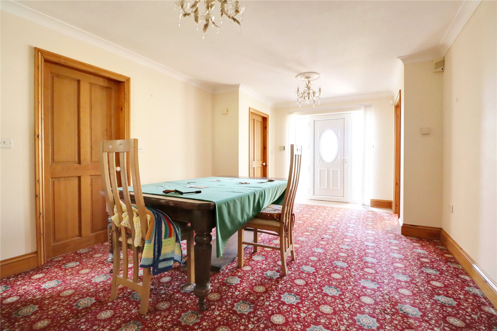 Impressive Central Dining Hall 11'8" x 19'6" (3.56m x 5.94m). With rear uPVC double glazed entrance door with patterned leaded glazing, adjoining sidelights, wall to ceiling coving and twin ceiling roses.