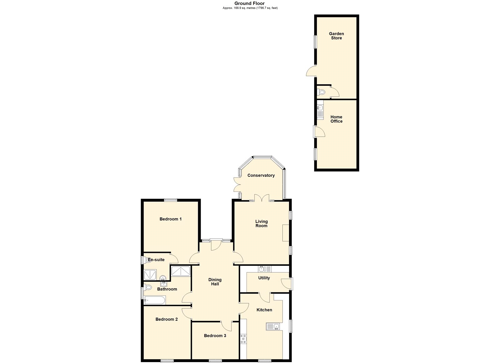 ** REDUCED ** NO UPWARD CHAIN ** USEFUL BRICK OUTBUILDINGS/HOME OFFICE ** 3 DOUBLE BEDROOMS ** An individually designed and built modern detached bungalow offering deceptively spacious, well proportioned and presented accommodation comprising, large central dining hallway, fine main living room leading to a rear conservatory, generously fitted kitchen with a large utility/side entrance, 3 double bedrooms with a master en-suite shower room and a luxury main family bathroom. The front provides manageable pebble laid gardens and driveway, access to either side leads to a private lawned rear garden that provides planted borders and a flagged seating area. Within the rear garden is a useful home office and adjoining garden store. Finished with uPvc double glazing and a modern gas fired central heating system. Viewing comes with the agents highest of recommendations. View via our Epworth office.