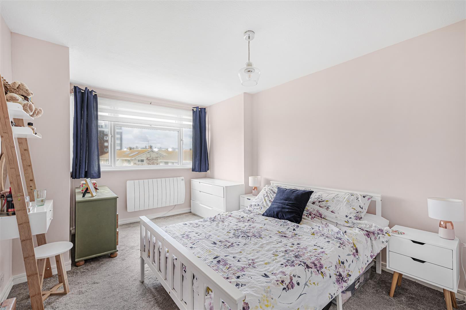 Bedroom One - Double glazed window to the front with sea view. Wall mounted electric heater. Built-in cupboard.
