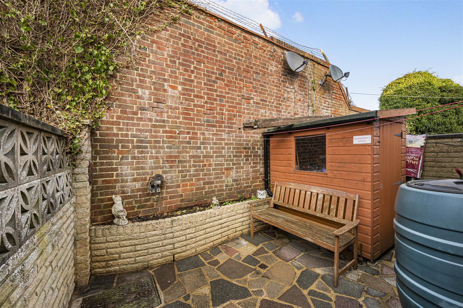 Outside - Rear courtyard garden. Being paved and having a raised flowerbed.