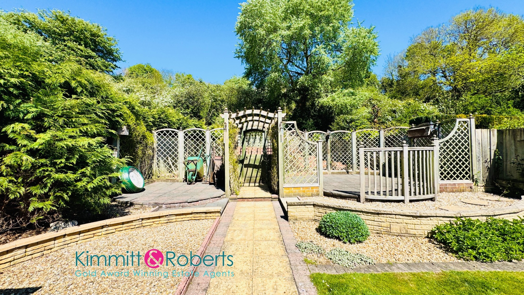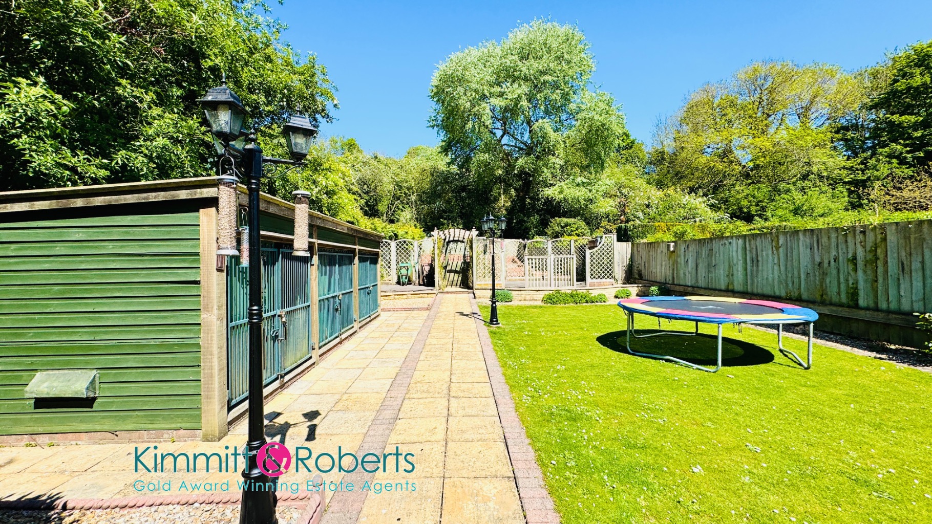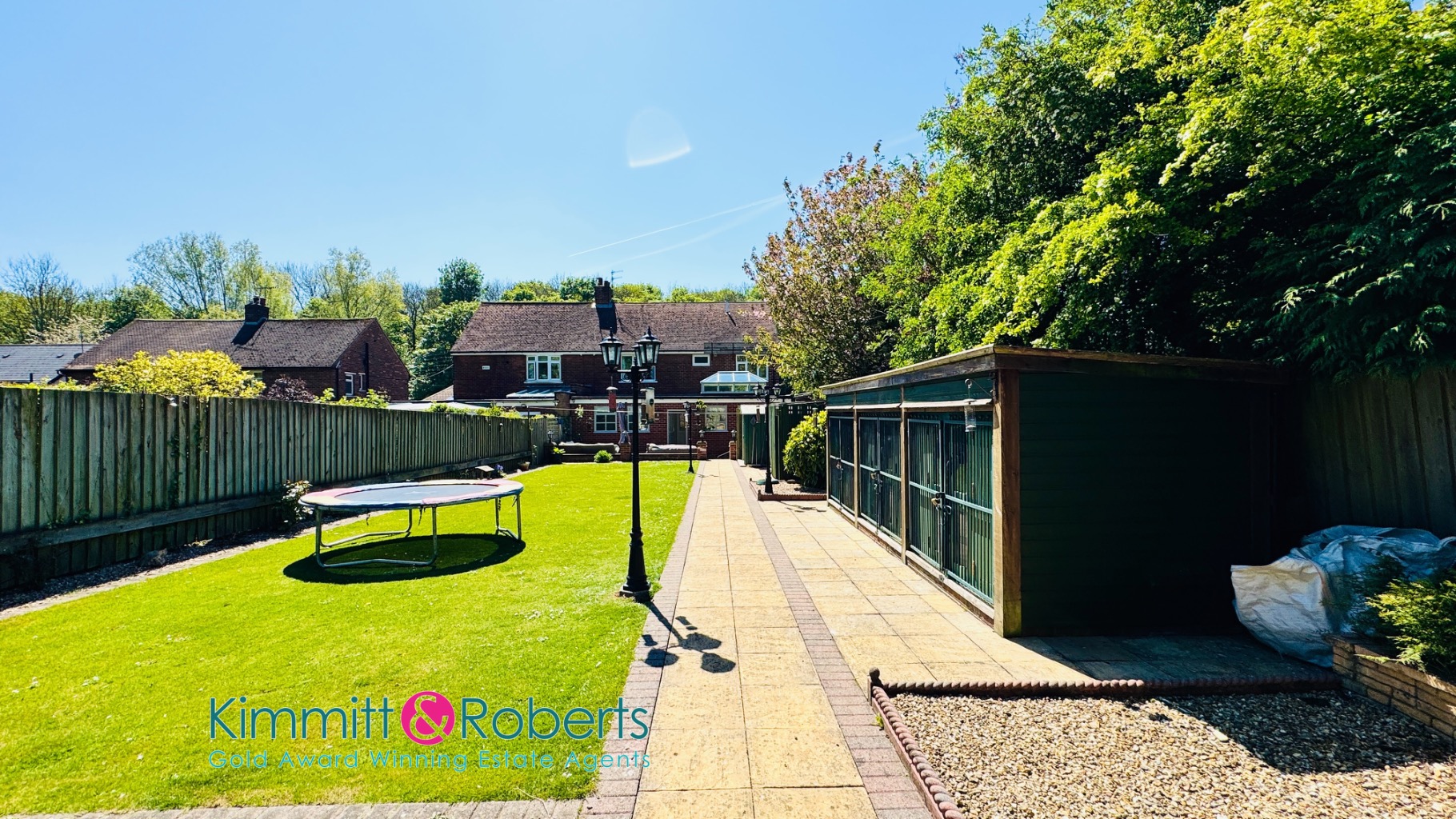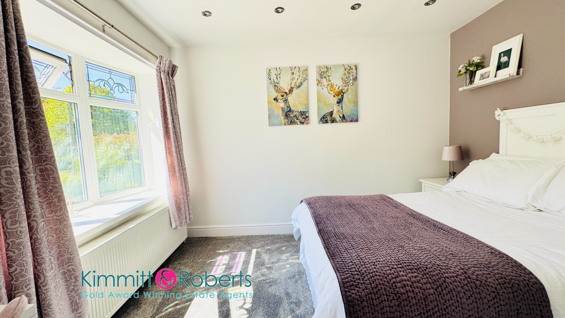 - Set on a large plot with substantial rear garden, paved front garden, driveway, and single garage.