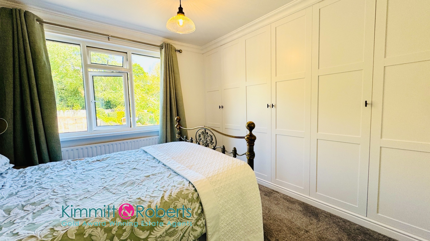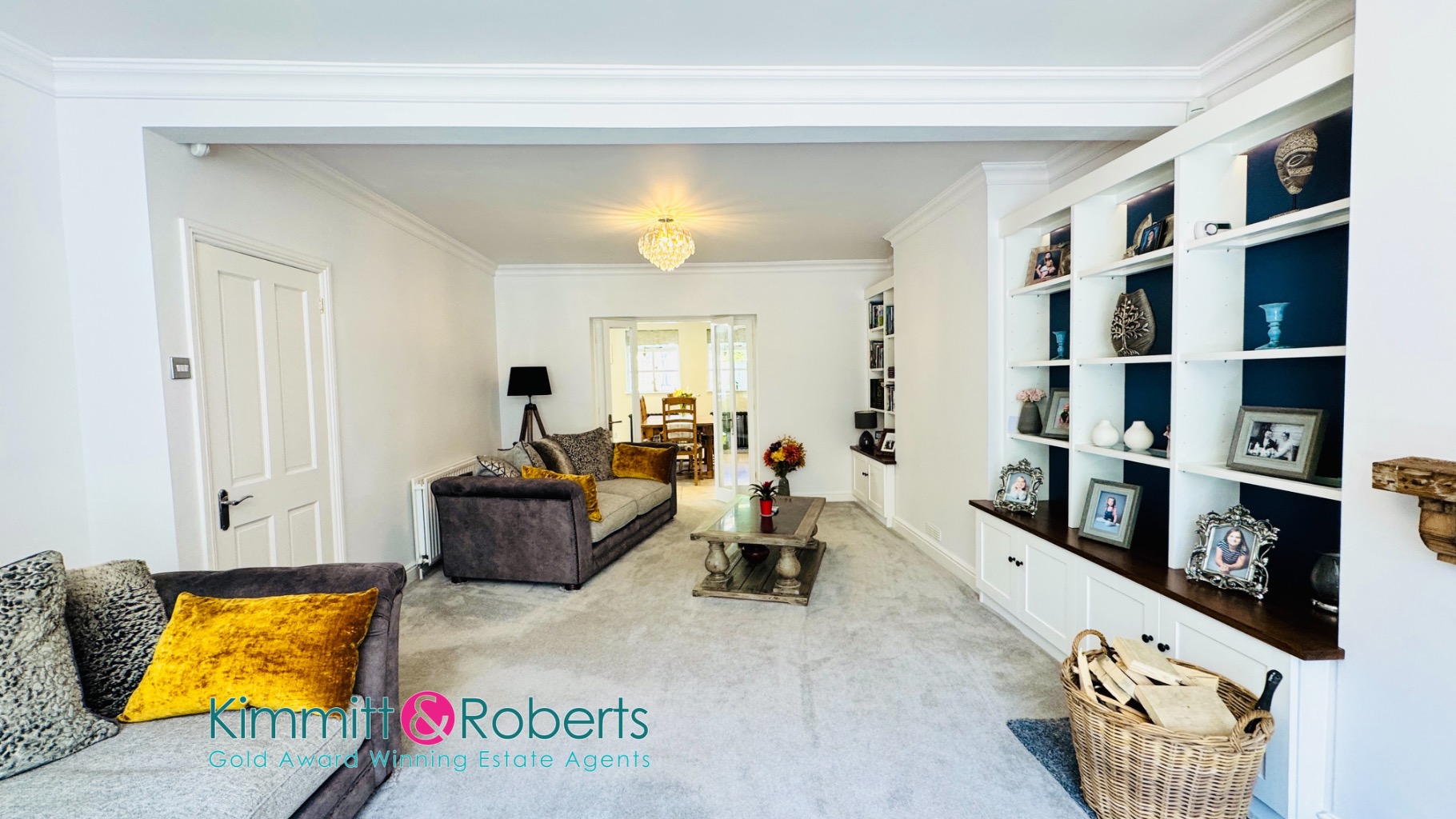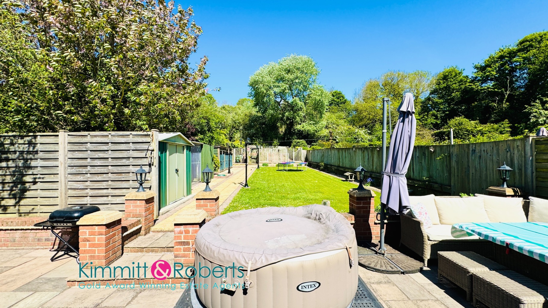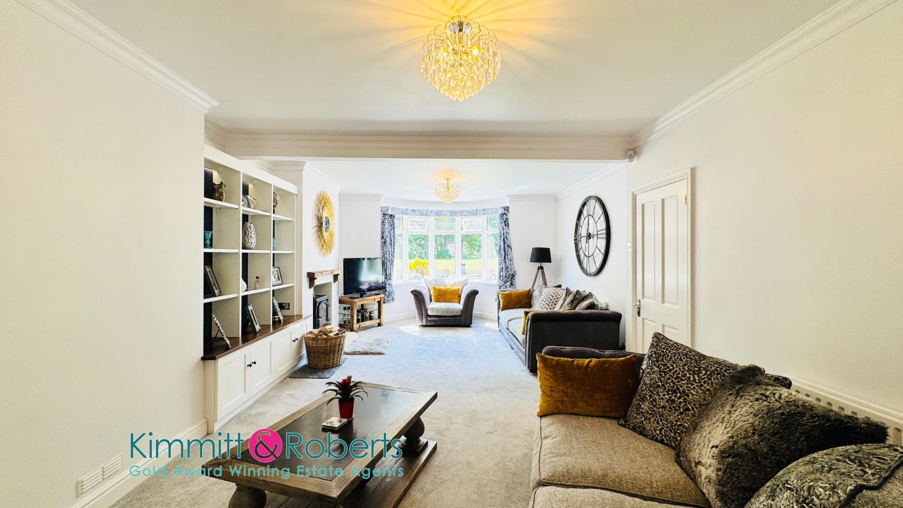 - Set on a large plot with substantial rear garden, paved front garden, driveway, and single garage.