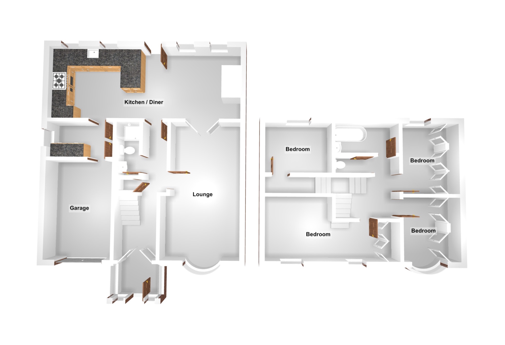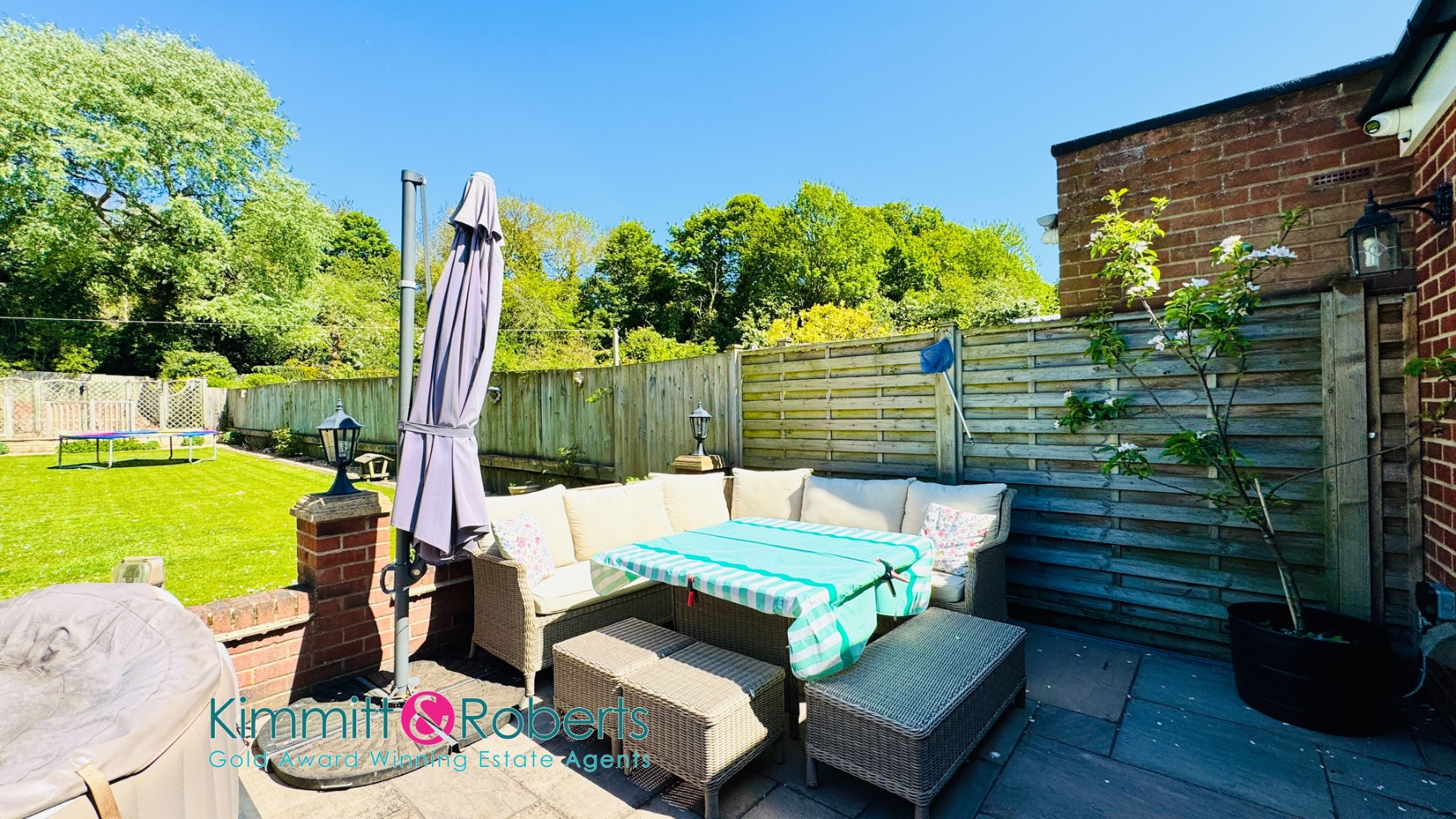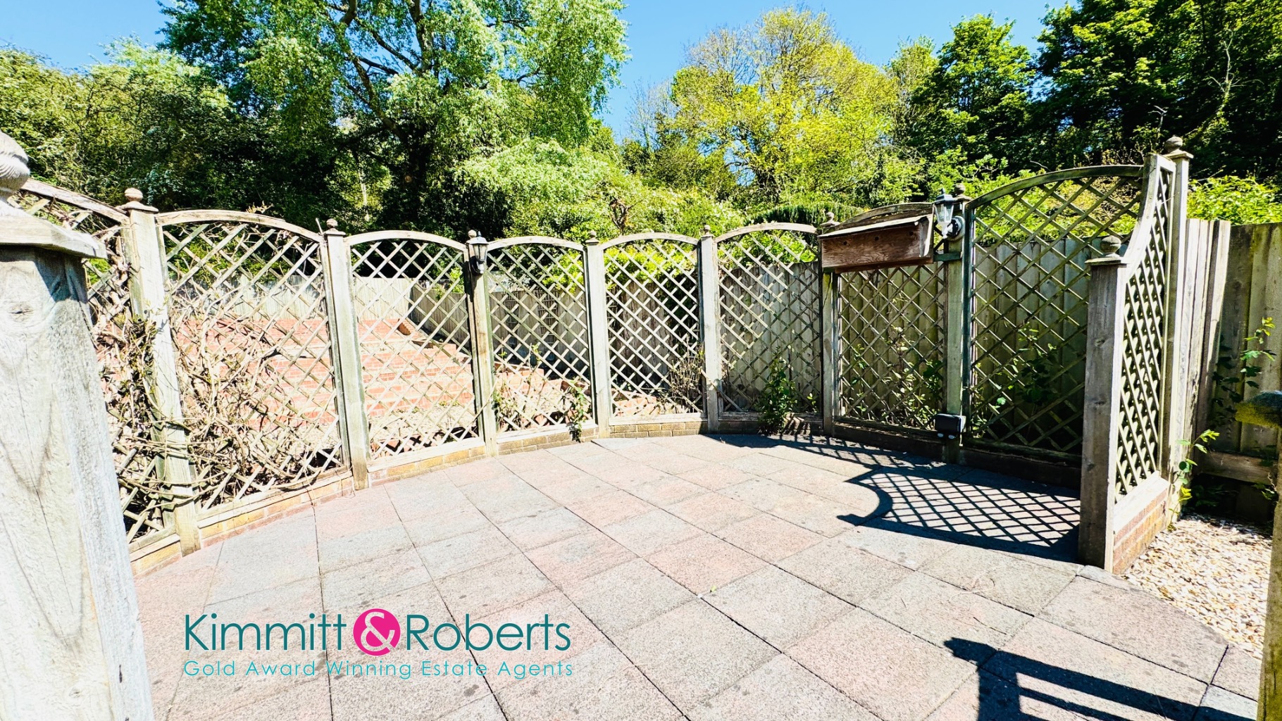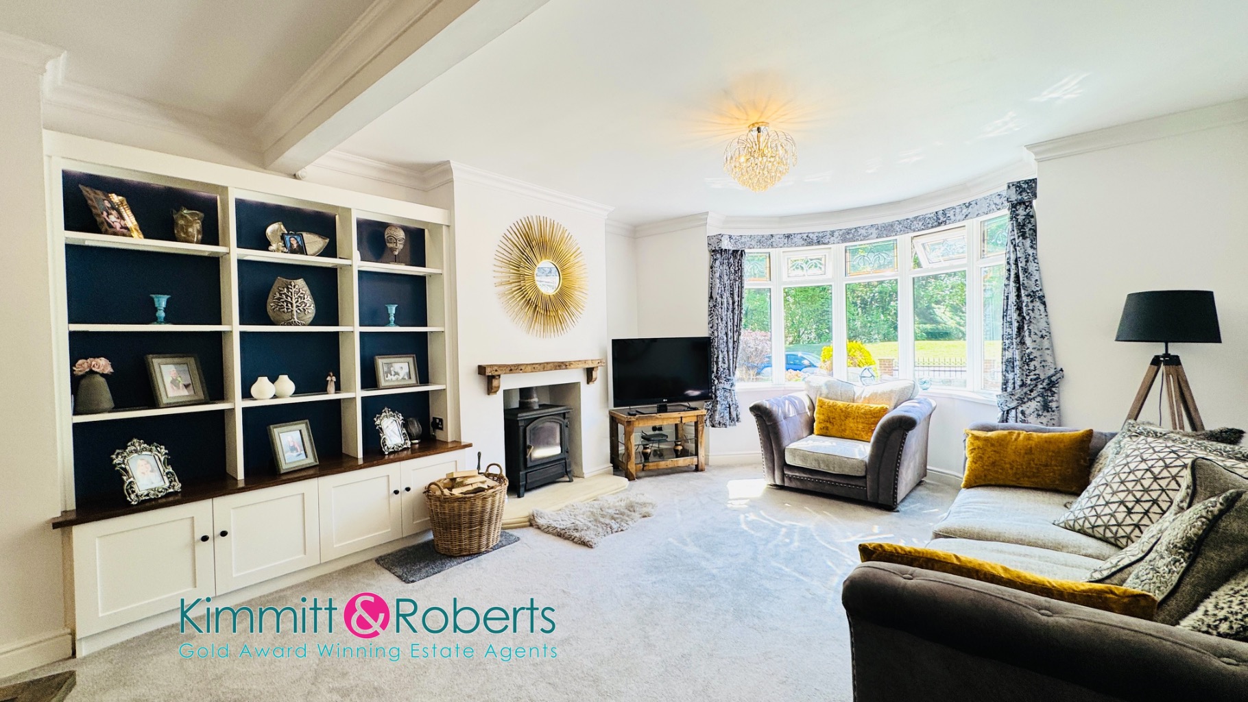 - Set on a large plot with substantial rear garden, paved front garden, driveway, and single garage.