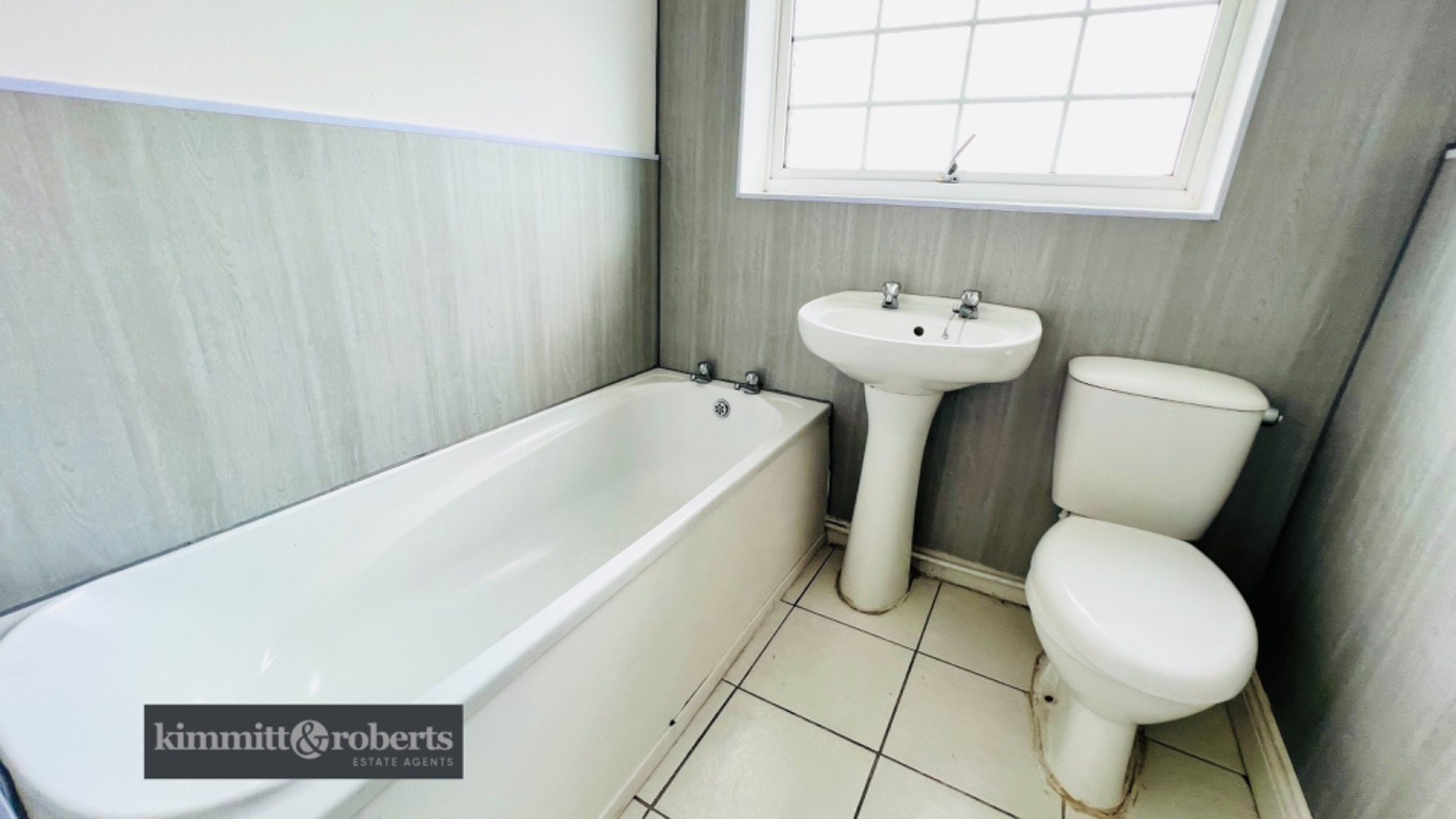 Bathroomhaving panel bath, w.c., wash hand basin, tiled walls, tiled floor and double glazed window'