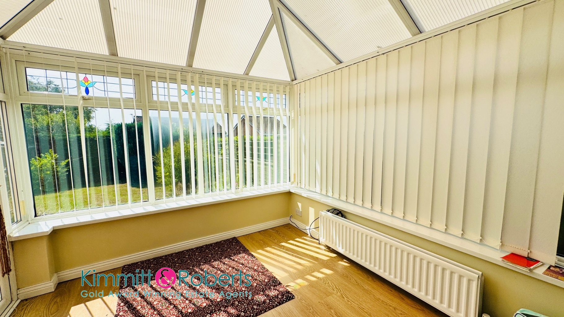 - Lounge, open dining/kitchen, and conservatory with garden views