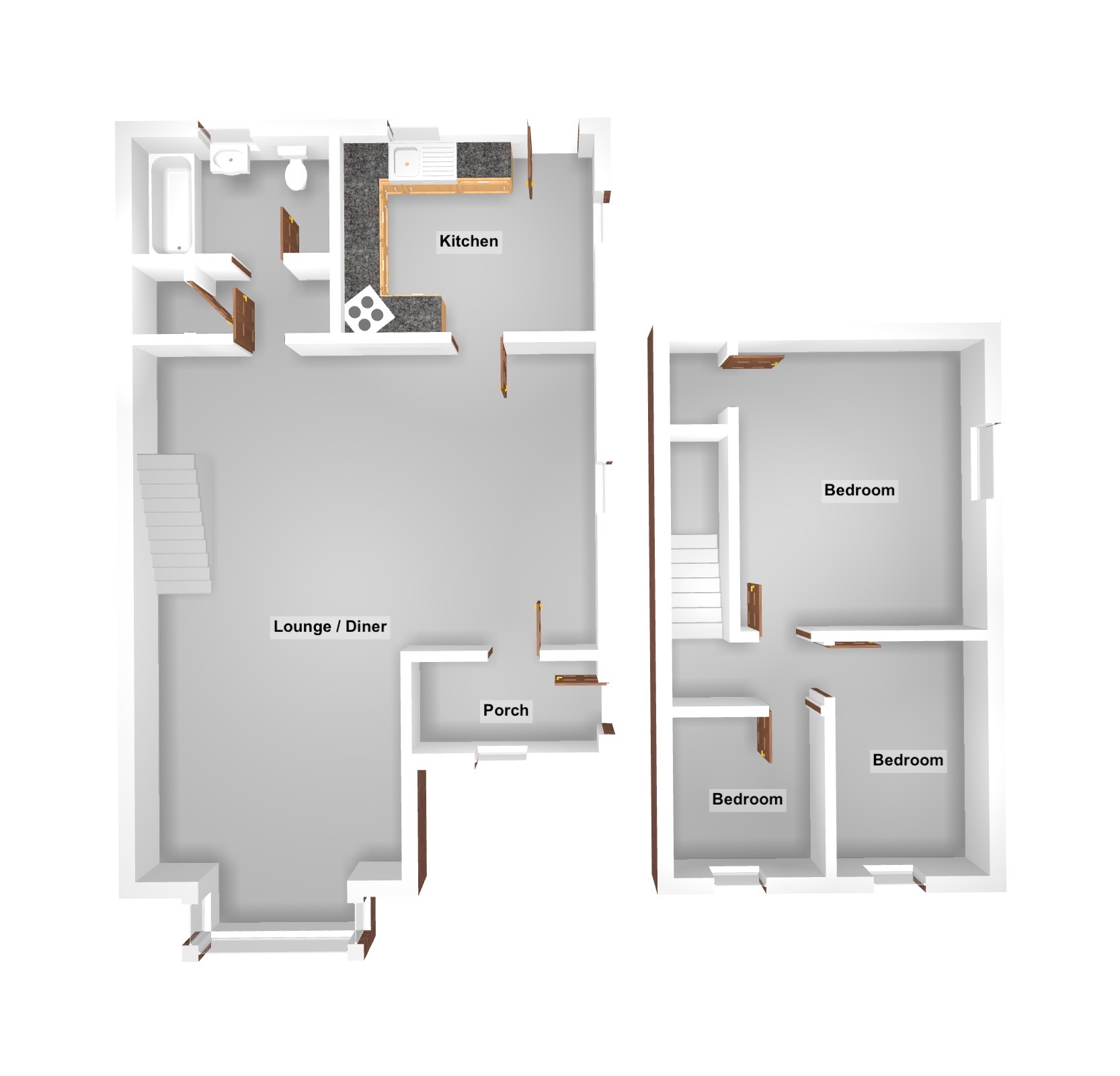 - Features include open plan reception rooms, fitted kitchen, one bathroom (on the ground floor), gas central heating, and double glazing.