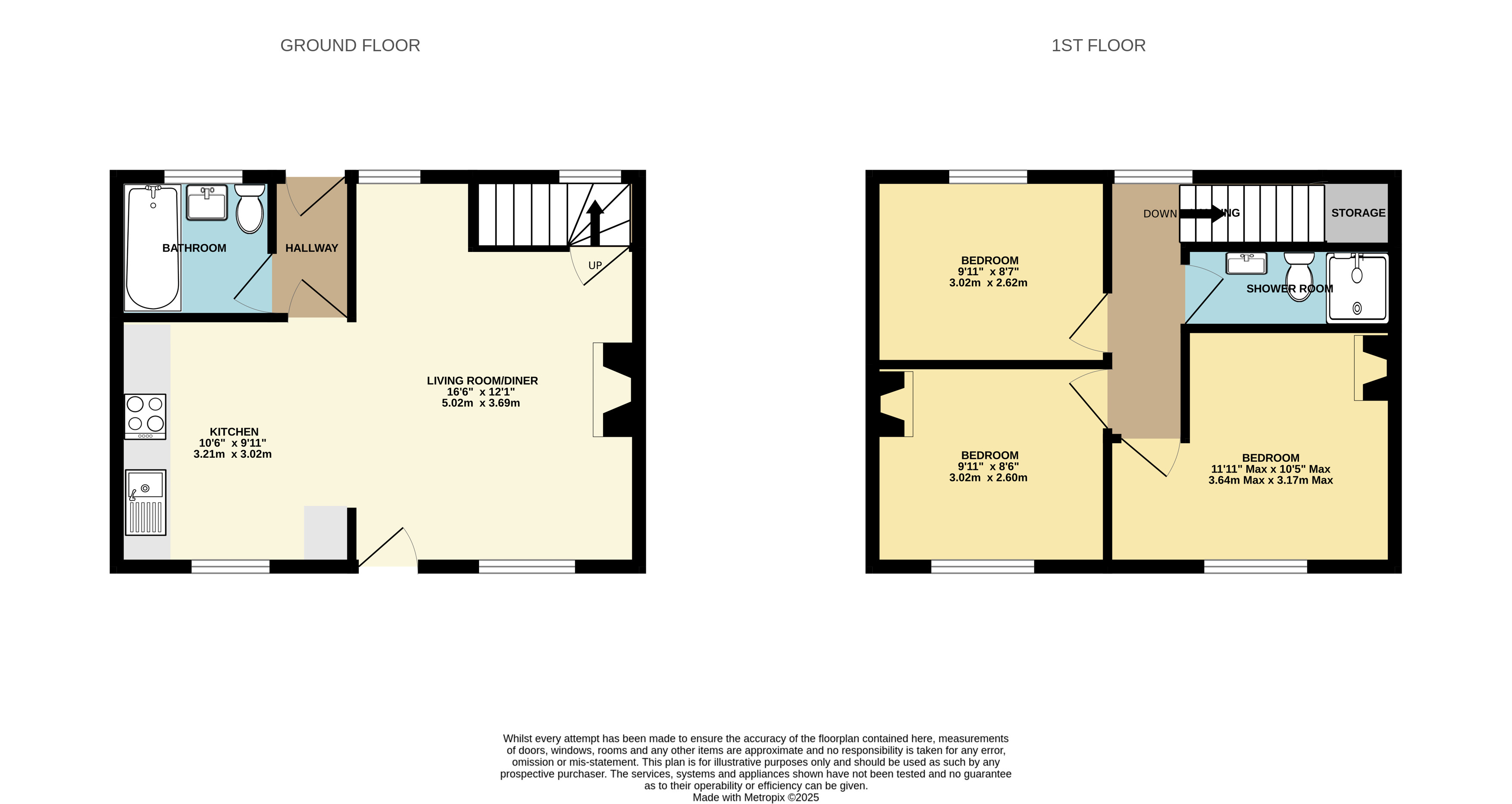 feature cast-iron decorative fireplace. Bedroom 2 enjoys views over the rear garden. In addition, there is a fully tiled shower room, with walk-in shower, WC and wash basin with vanity beneath.