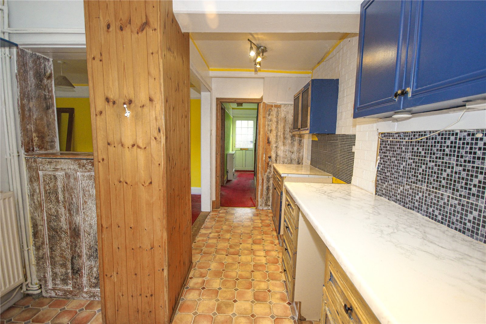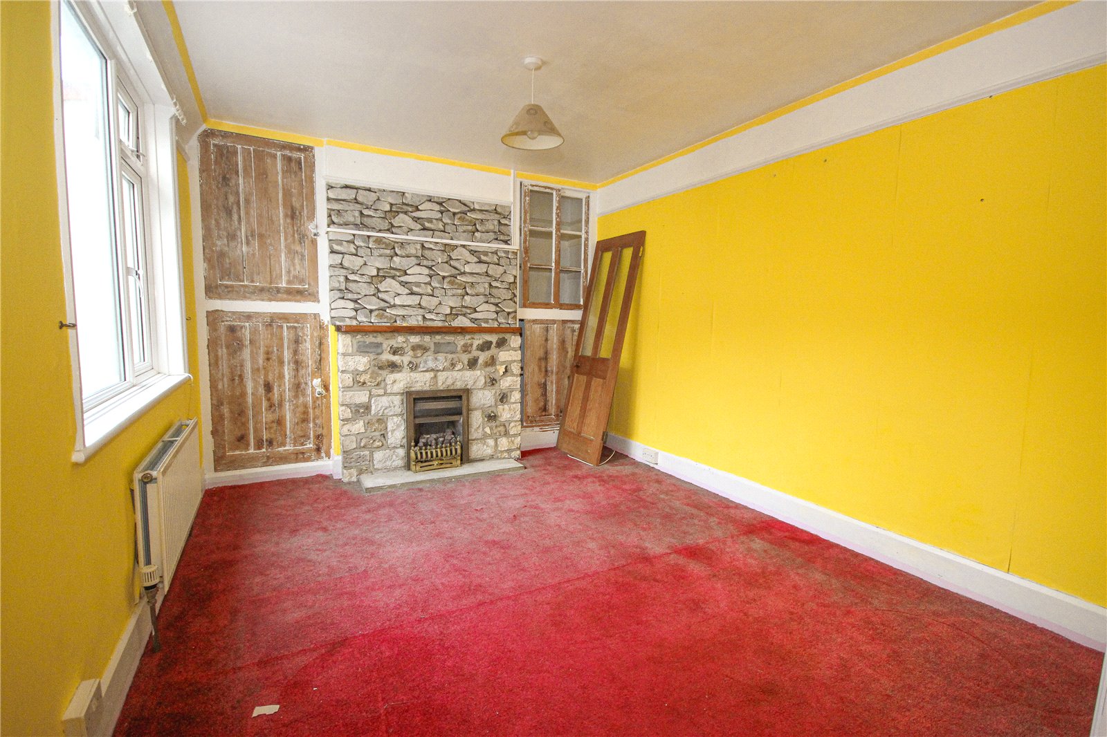 The front door opens to the entrance hall with a cupboard directly on your left and stairs rising to the first floor. A door to the right leads into the living room which has a large bay window to front with feature fireplace with inset gas coal effect fire. A door from the hallway then gives access to the kitchen which is an L shape and fitted with a range of base and wall units with space for cooker, worktops tiled splash backs and inset sink, with a space and plumbing for washing machine and further under counter space for a further appliance. In addition, there is a wall mounted ideal gas central heating boiler a fitted shelved cupboard, tile effect vinyl flooring, a door to the deep under stairs storage cupboard and a door to the rear garden. A large open arch opens from the kitchen into a good sized dining room with fireplace with gas coal effect fire and cupboards either side. Both the kitchen and dining room have windows overlooking the rear garden.