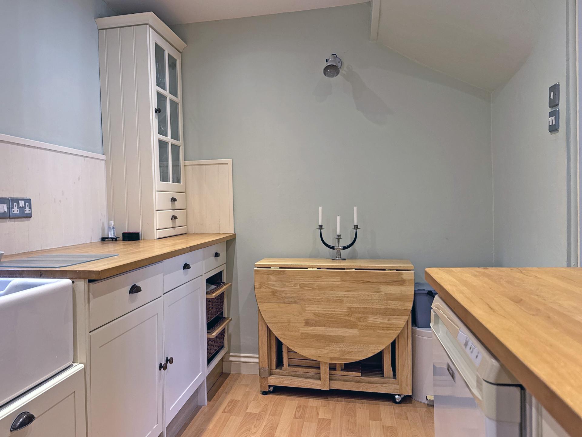 Offered for sale with no ongoing chain, is this two-storey end of terrace cottage with double glazing and electric heating. A gated entrance just off The Square leads to a flight of steps rising to the front door. Once inside, the sitting room has a window with shutters to the front, easterly aspect and there is also a fireplace with log burner. A connecting door leads to the separate kitchen/breakfast room that has an attractive, fitted kitchen with beech worksurfaces, plenty of storage and built-in appliances to include dishwasher, fridge, oven and gas hob, with space for a washing machine and freezer.