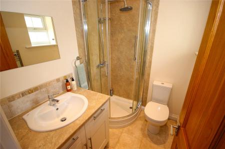 Stairs rise from the entrance hall to the first floor landing with two double-sized bedrooms with en-suite shower rooms, both with windows to the front. The principal bedroom has fitted wardrobes. and cupboards and bedroom three is a further double bedroom at the rear of the property overlooking the garden with another range of fitted wardrobes. Bedroom 4 is also a double room with window overlooking the gardens. In addition, there is a good-sized family bathroom with bath, WC, wash hand basin and shower.
