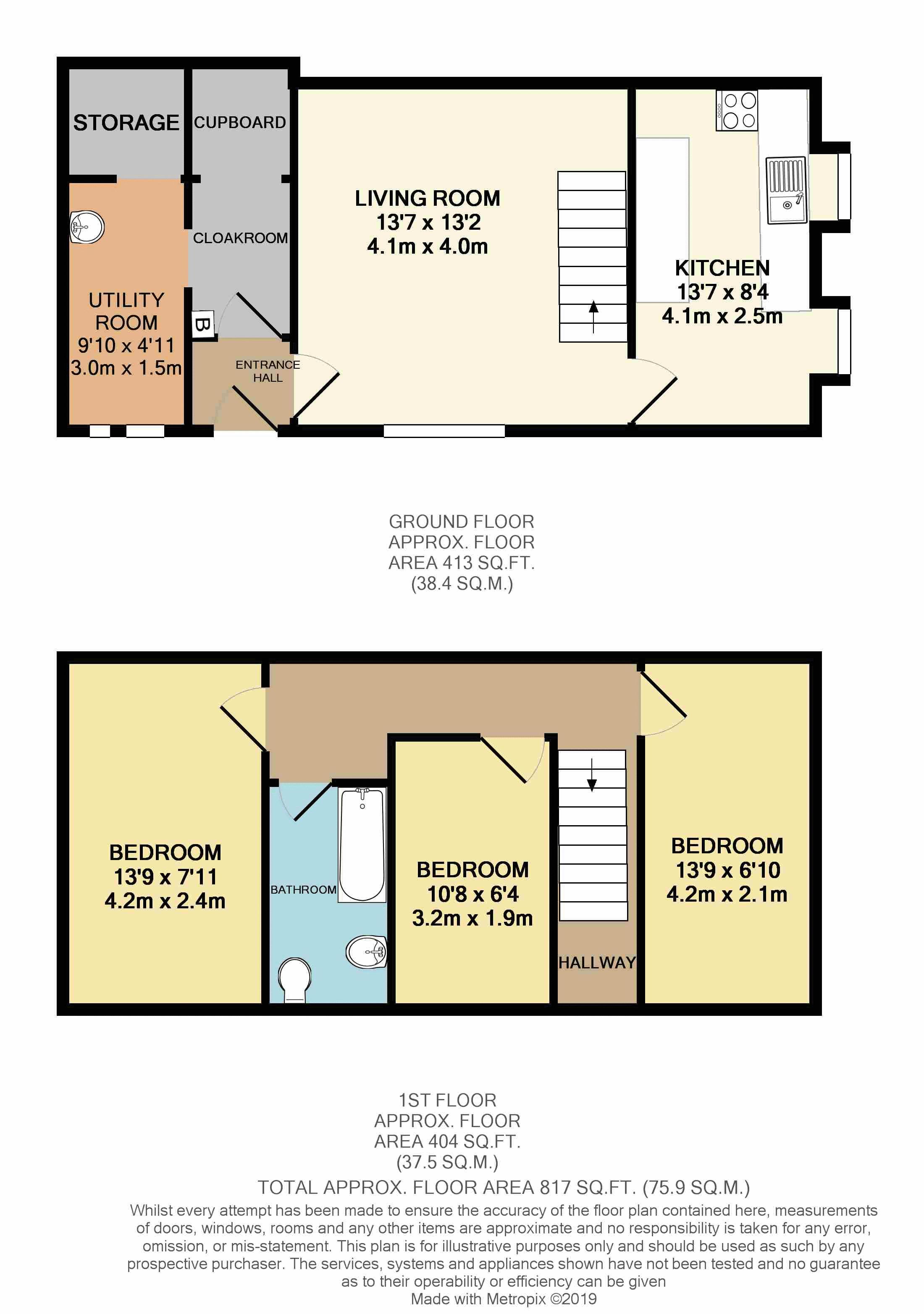 Upstairs, there are two double bedrooms, one featuring a walk-in cupboard as well as a generous single bedroom with additional storage space. A good-sized bathroom with a white suite completes the accommodation.