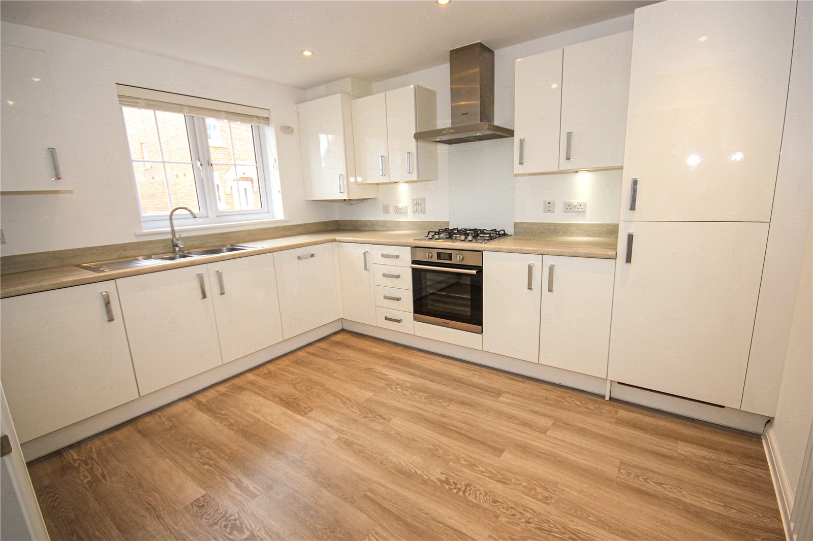 The kitchen/ breakfast room has a matching range of white gloss units and laminate worktops, space for a table and chairs, as well as several integrated appliances including a washing machine, dishwasher, fridge freezer, electric oven and gas hob with extractor. There is a large living room/diner to the rear of the property which features French doors leading to the enclosed rear garden. There is also a large under stairs storage cupboard. which. Stairs rise to the first floor where there are four bedrooms, including the principal bedroom with built in wardrobes and en-suite shower room. Bedrooms two and three are both double rooms, whereas bedroom four is a smaller single room. The main bathroom is fully fitted with a bath with mixer taps and shower overhead, hand basin and WC.