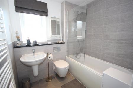 The property has two double bedrooms, one of which has built in double wardrobes, alongside a contemporary bathroom which is mostly tiled with bath and shower over, concealed cistern WC, wash hand basin and heated towel rail.