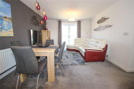The open plan living space incorporates a modern kitchen to one end with tiled floor, cream base and wall units, integral sink and laminate worktops. There is a built-in fridge freezer, oven with gas hob and extractor and dishwasher. The gas central heating boiler is also situated in the kitchen.