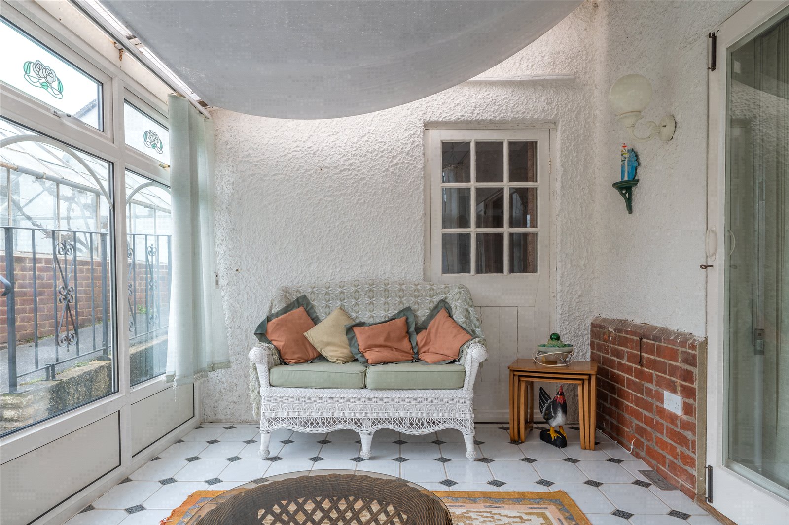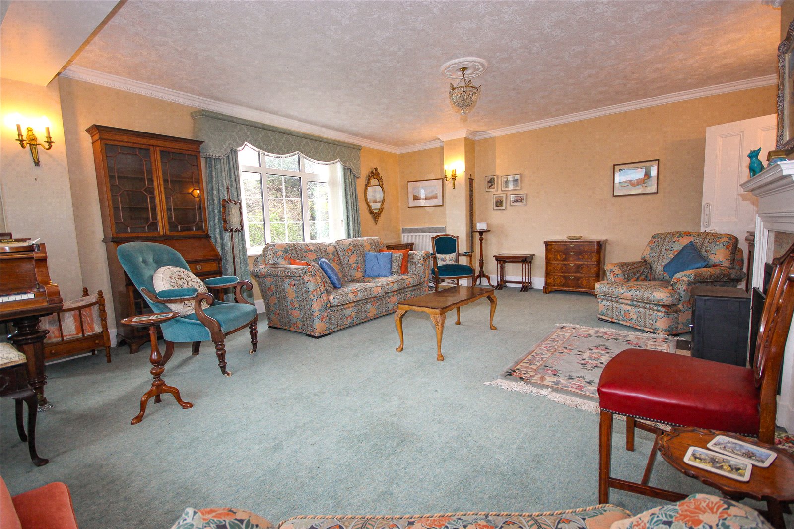 At the entrance to the lovely property is an overhanging porch which has an original built-in bench seat. The front door has an attractive circular glazed panel which enjoys delightful views across to the Estuary and sea. This opens into the entrance hall with its charming staircase and useful understairs storage. A door to the left leads into an extremely spacious living room, a double aspect room with large windows framing wonderful views across the Estuary and out towards the sea. This room has been extended and features an attractive inglenook style fireplace and ornate coving.
