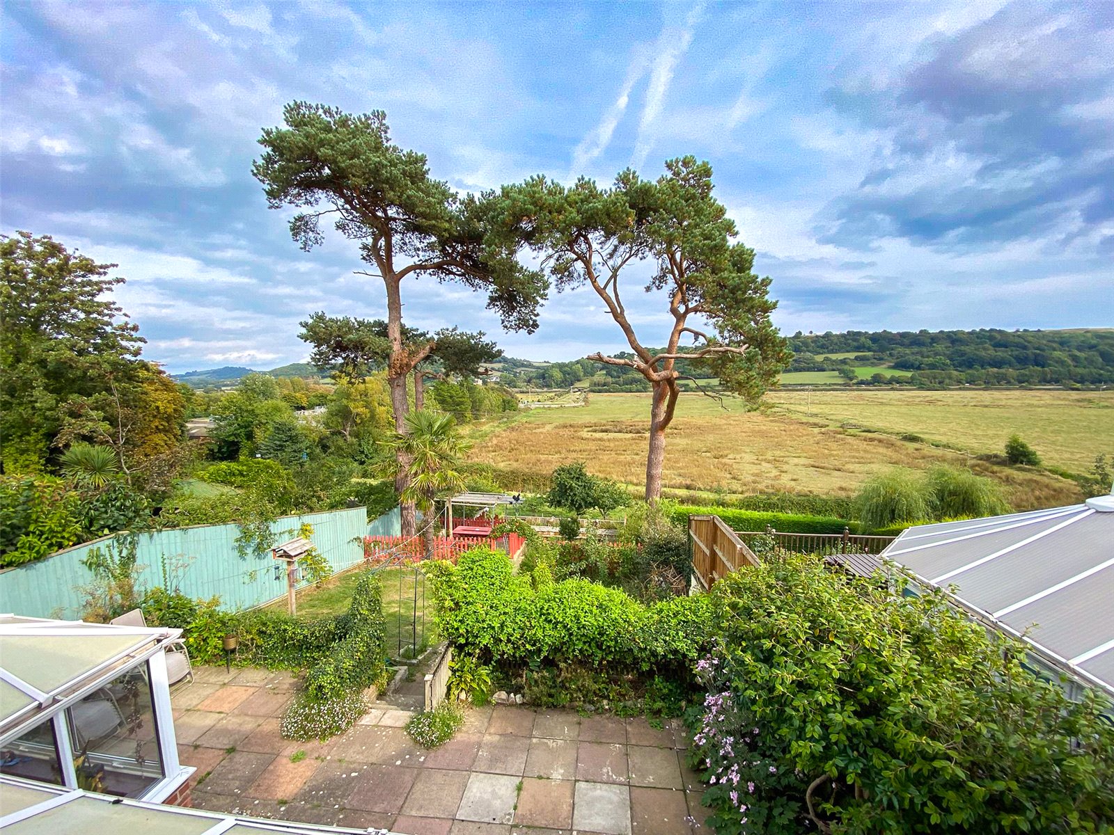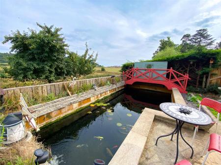 Steps lead down through the terraced areas to a further low paved area and seating area perfect for alfresco dining and the bottom of the garden where there is a pond and decorative bridge providing a perfect viewing platform for the outlook beyond.
