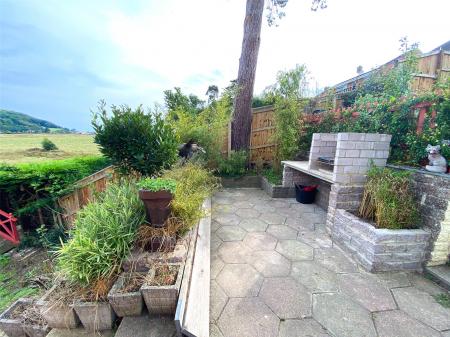 The rear garden is particularly private and comes with views stretching far over the neighbouring Wetlands reserve and to the sea. Immediately adjacent to the conservatory and rear is an area of paved patio which leads down through terraced areas of garden with an area of lawn intersperced with various mature shrubs and trees.