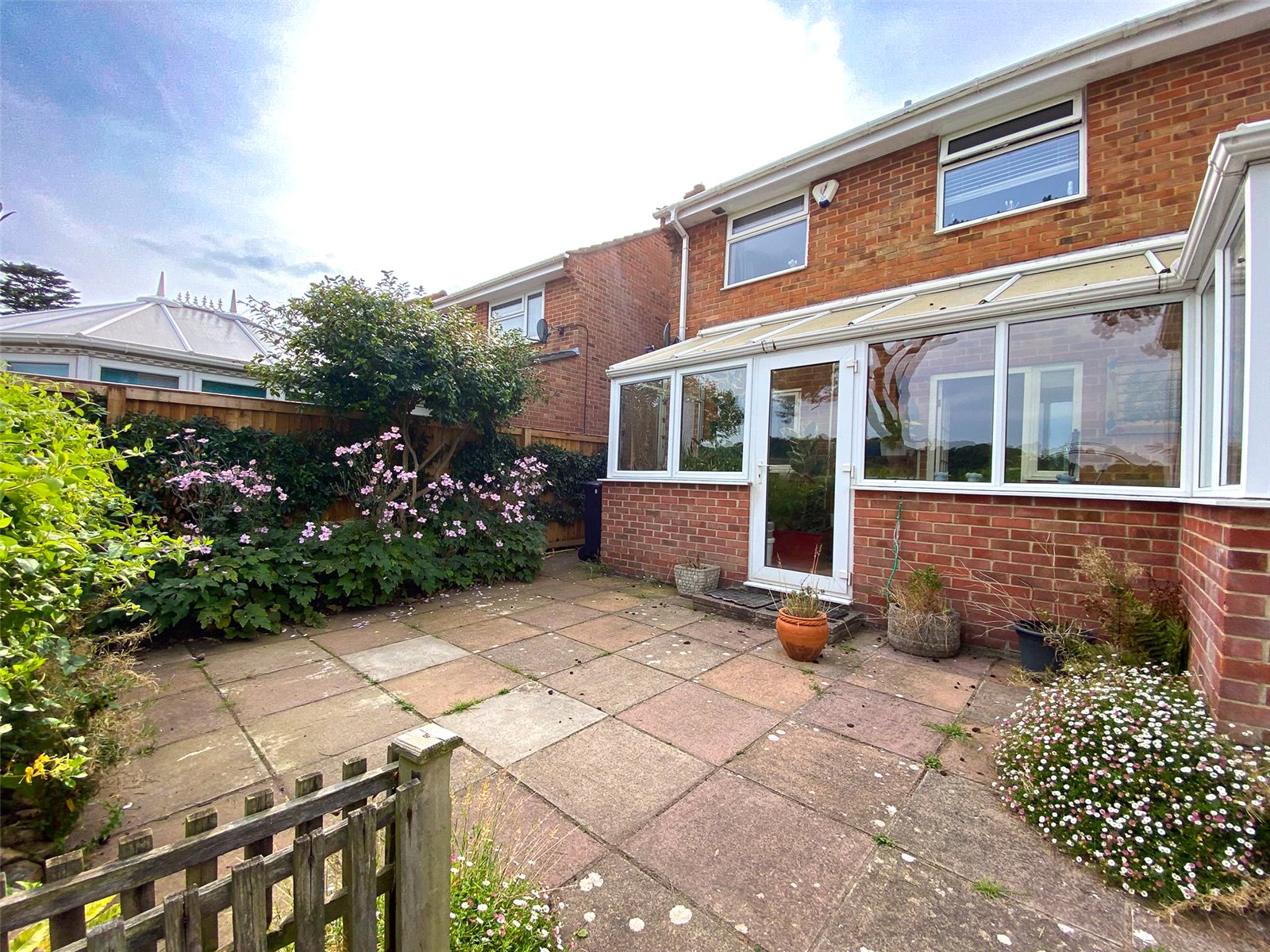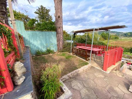 The rear garden is particularly private and comes with views stretching far over the neighbouring Wetlands reserve and to the sea. Immediately adjacent to the conservatory and rear is an area of paved patio which leads down through terraced areas of garden with an area of lawn intersperced with various mature shrubs and trees.