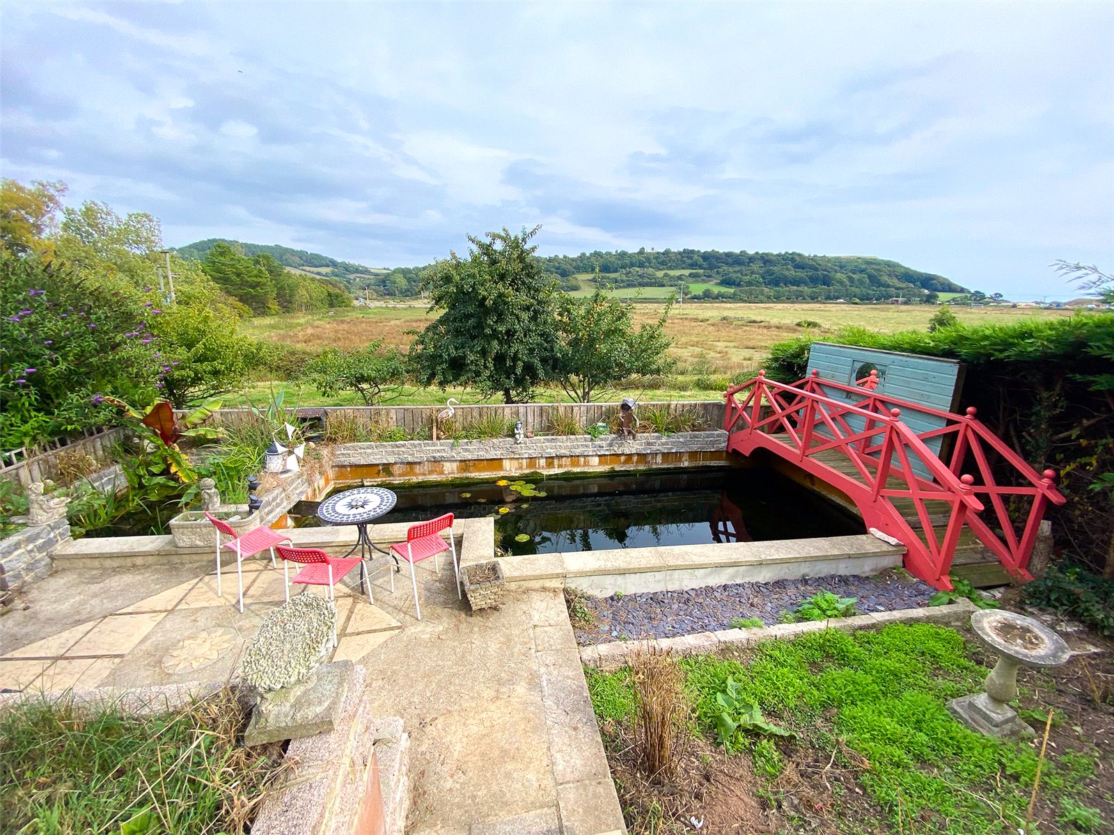 Steps lead down through the terraced areas to a further low paved area and seating area perfect for alfresco dining and the bottom of the garden where there is a pond and decorative bridge providing a perfect viewing platform for the outlook beyond.