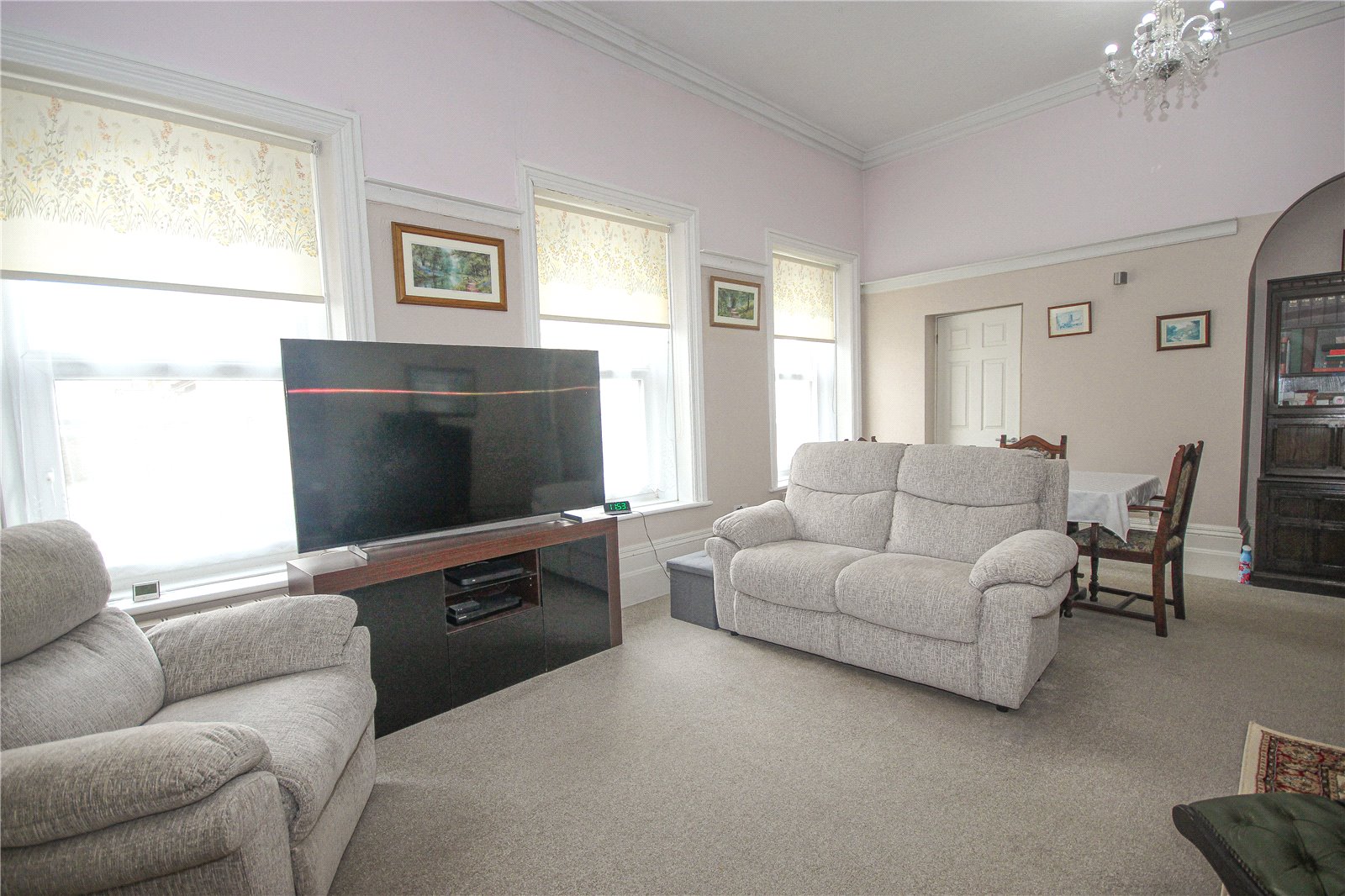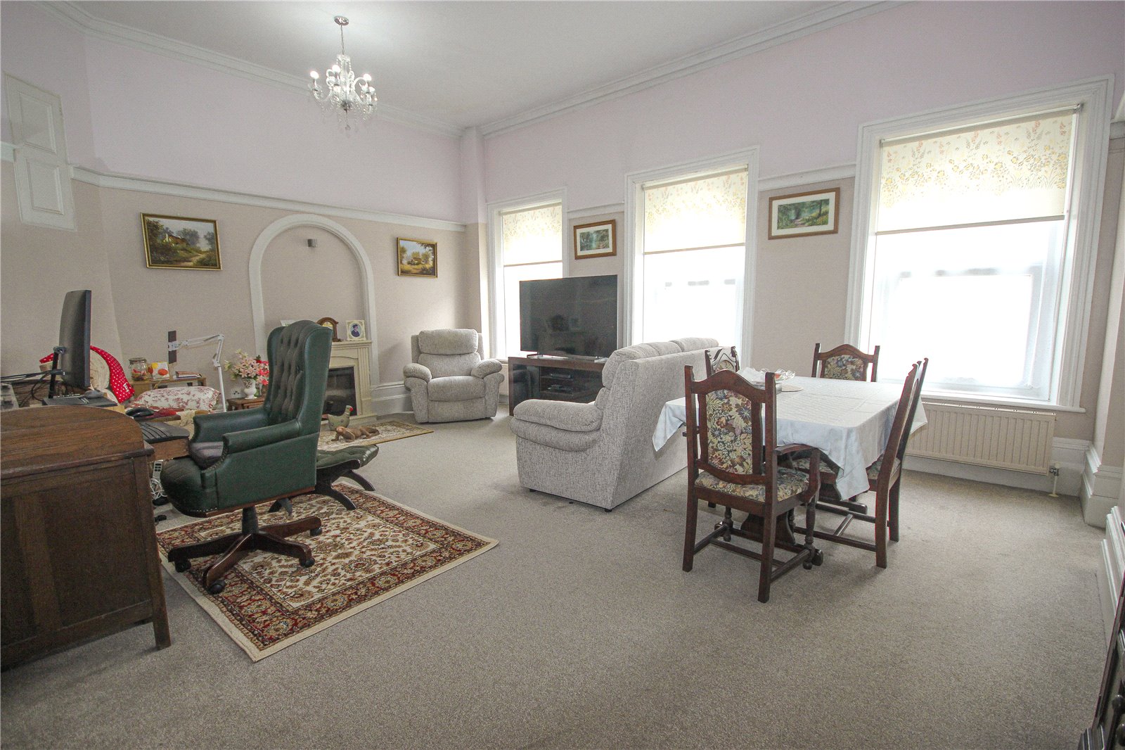 6 Whitecliff is an attractive period apartment which occupies part of the ground floor in a former hotel building situated on the corner of the seafront and Beach Road. Entrance is provided via a secure entry door into the impressive, spacious and beautifully presented lobby of this former beachfront hotel. The apartment is tucked away close to the original grand staircase with its own private front door.
