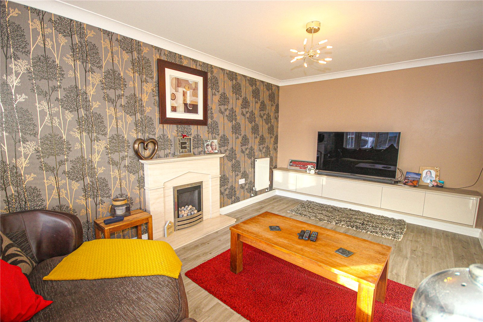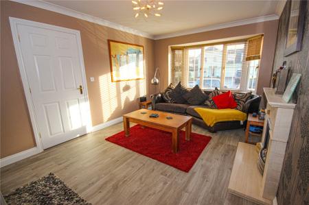 Composite front door opens to the hallway with WC to one side and stairs rising to the first floor. On the left-hand side there is the living room with a bay window to the front and a feature gas fireplace with marble effect surround.