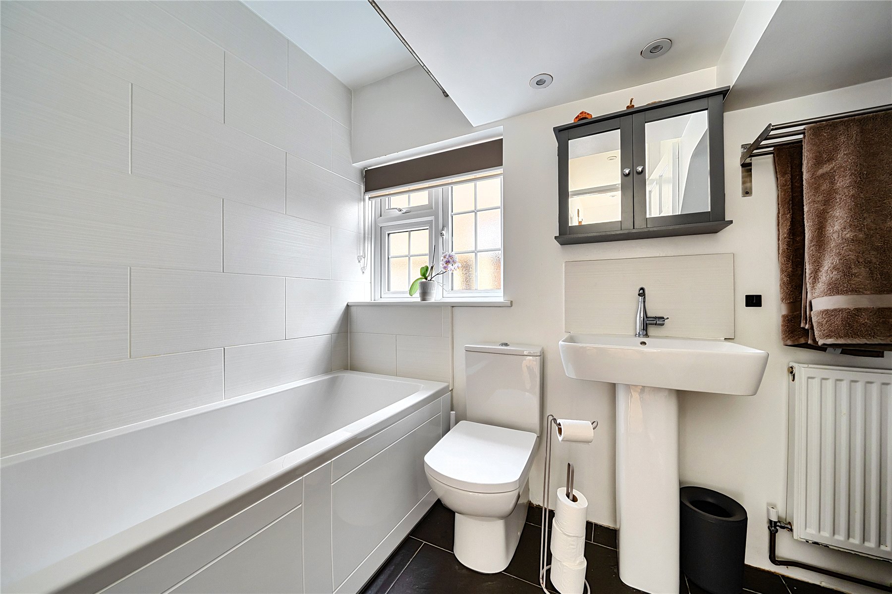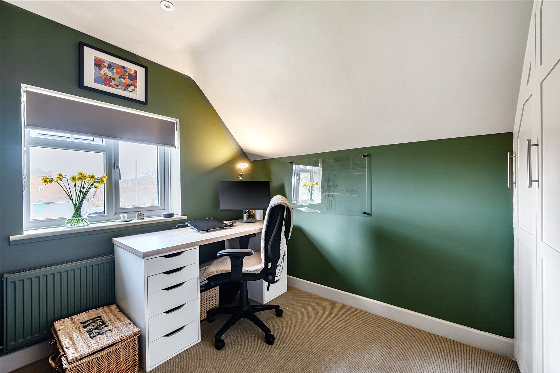 On the first floor there are three bedroomstwo doubles with built-in wardrobes and a smaller single bedroom, ideal as a study, hobby room or nursery.