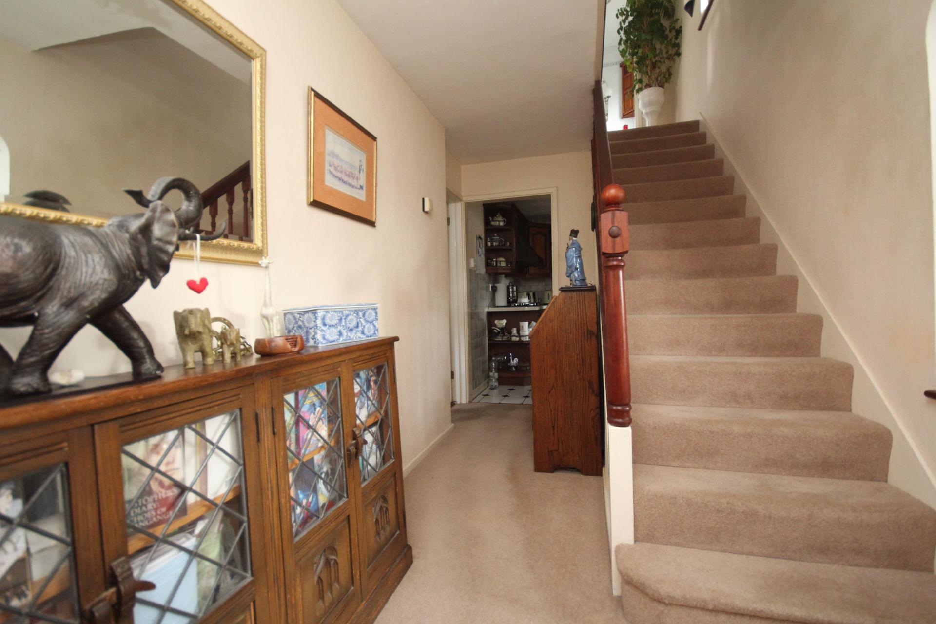 Doors to kitchen, family room and lounge/diner, stairs to first floor landing with under stairs storage cupboard.