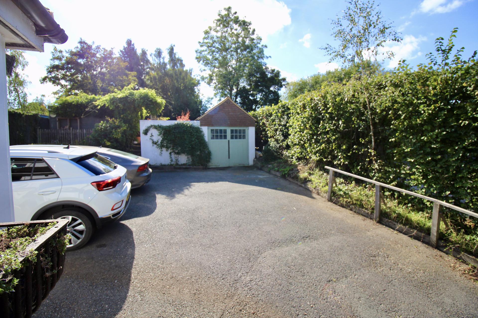 Hardstanding parking area and garage. Steps leading to rear garden.