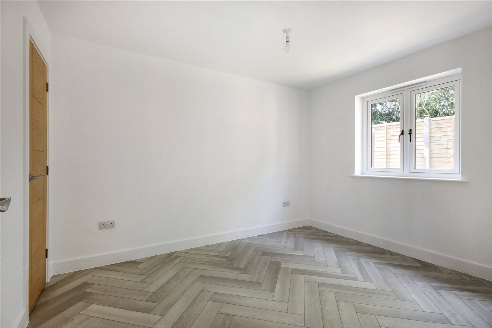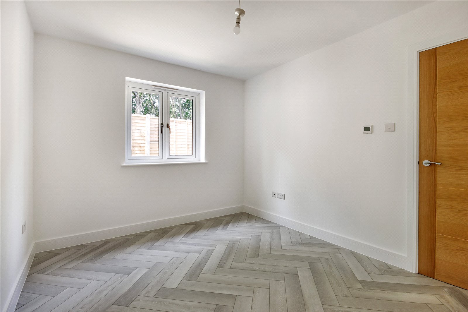 Bedroom 11'7" x 9'4" (3.53m x 2.84m). Double glazed window to rear. Wood effect flooring with underfloor heating. Plain ceiling. Cupboard housing fuse board and water tank.