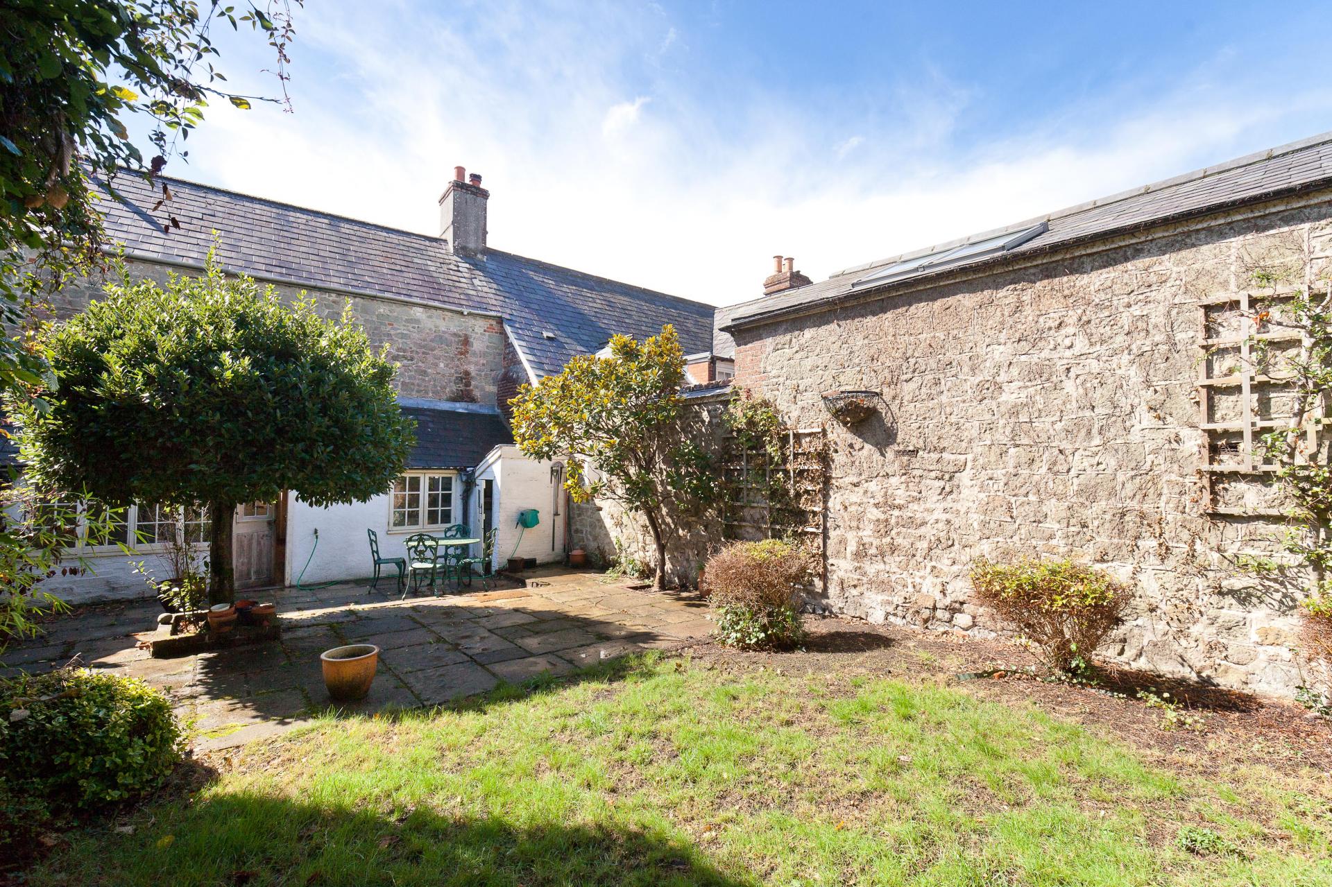 The private rear garden is located off the kitchen and is of a Cottage style.