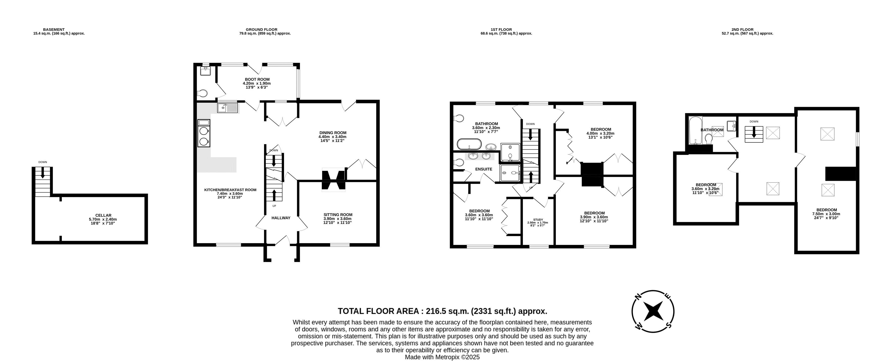 The property is entered via an impressive central hallway that gives access to all areas of the home. To the left, the kitchen has been tastefully opened into a kitchen diner with a dual aspect allowing plentiful natural light through the sash windows. A separate dining room is located to the rear of the property, as is a useful boot room, whilst the front sitting room is an inviting space focused around the log burner. Below, the cellar provides essential storage although offers the potential of a complete transformation for a hobby, TV or study space. The first-floor boasts three exceptionally well-proportioned bedrooms, each with built-in wardrobes whilst the principal bedroom also features a newly installed ensuite shower room. Additionally, the first-floor offers a separate study room and dour-piece family bathroom. Completing the accommodation is the second floor that features two additional bedroom spaces and a family bathroom.