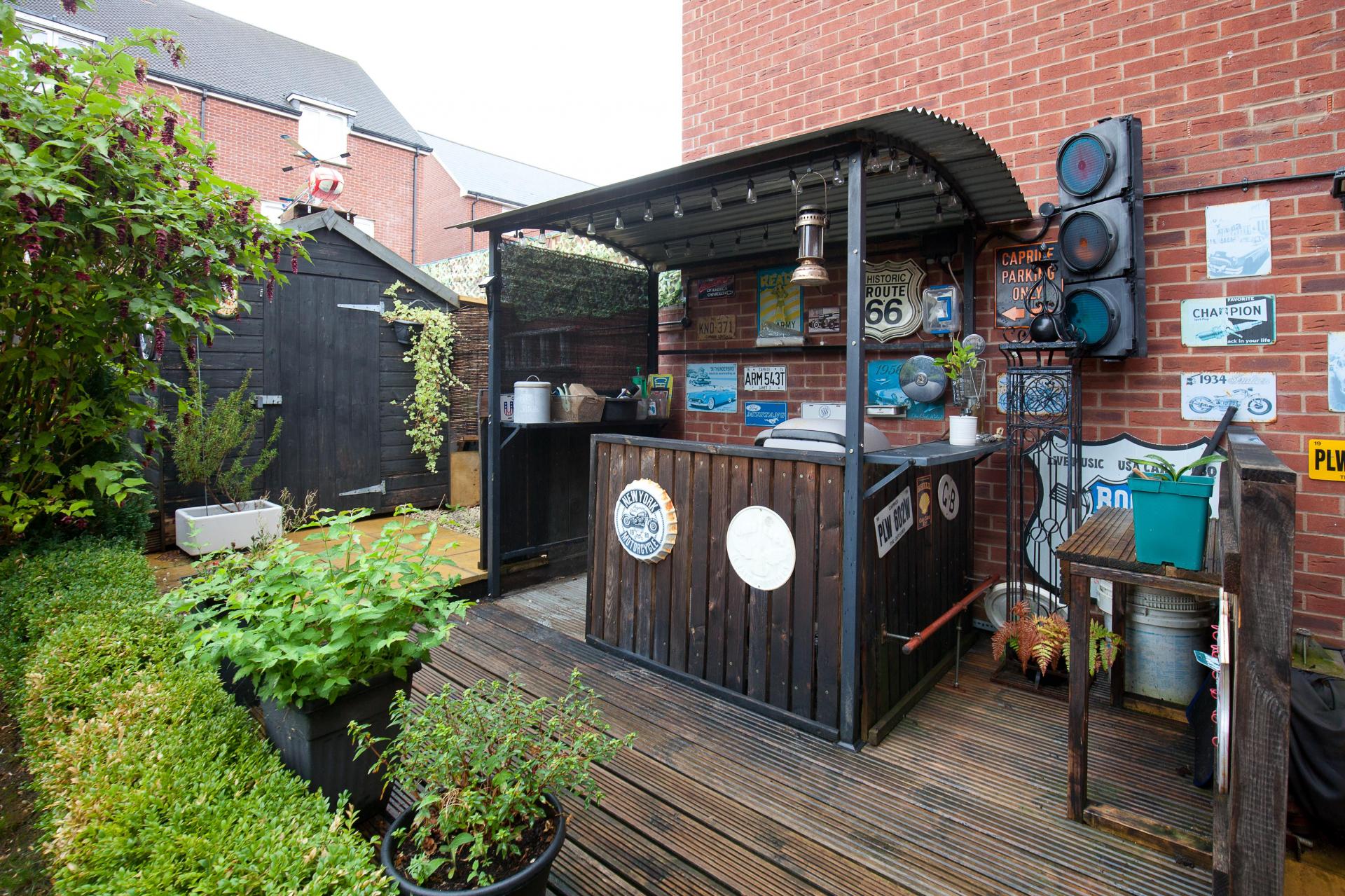 The property has a low maintenance rear garden which has a small lawn area, with patio providing a seating area, as well as a summerhouse, a small shed, and a covered barbeque area.