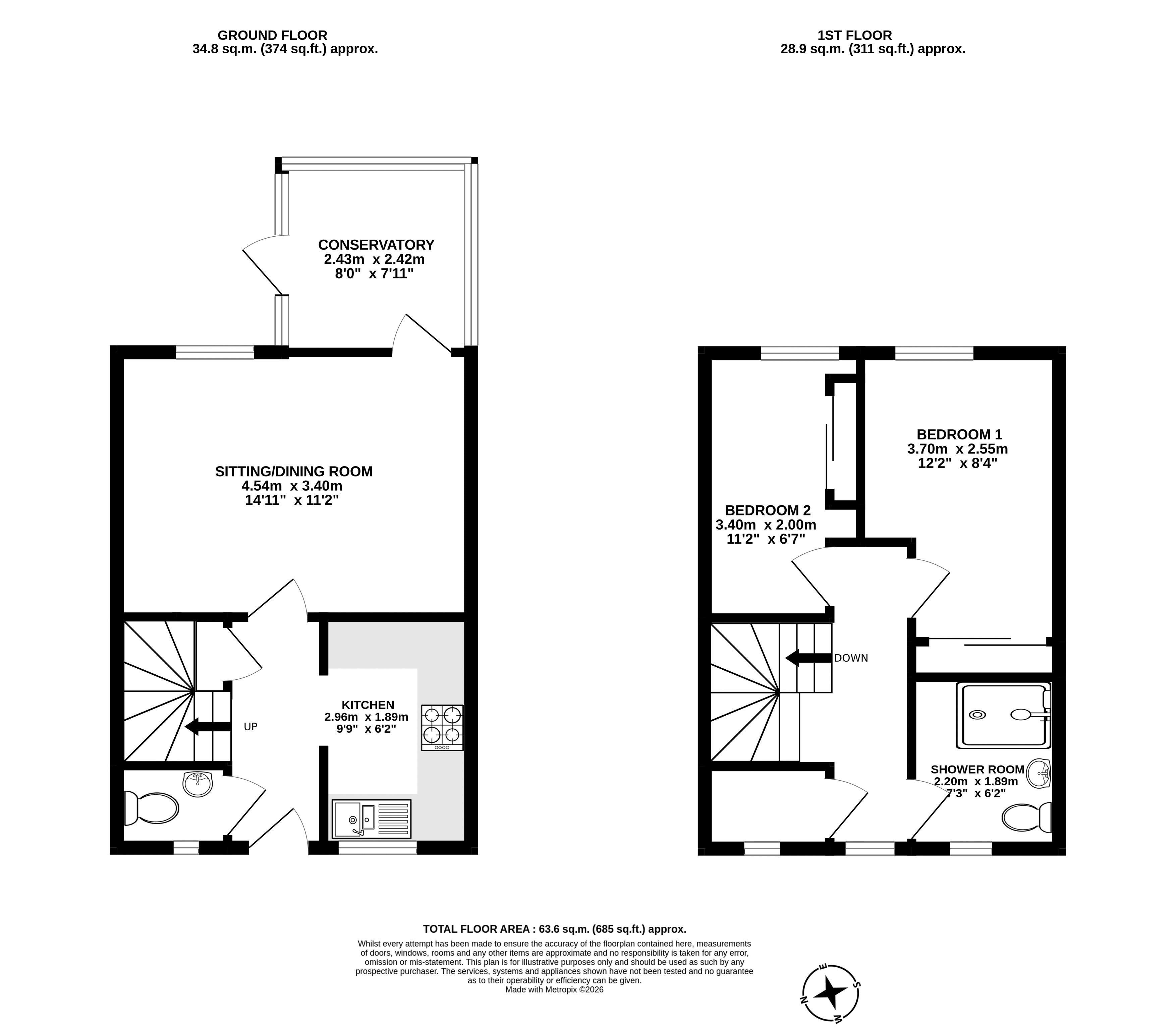 Upstairs, there are two good sized bedrooms which both benefit from a fitted wardrobe, as well as a modern shower room. The landing also has a walk-in cupboard providing plenty of storage space.