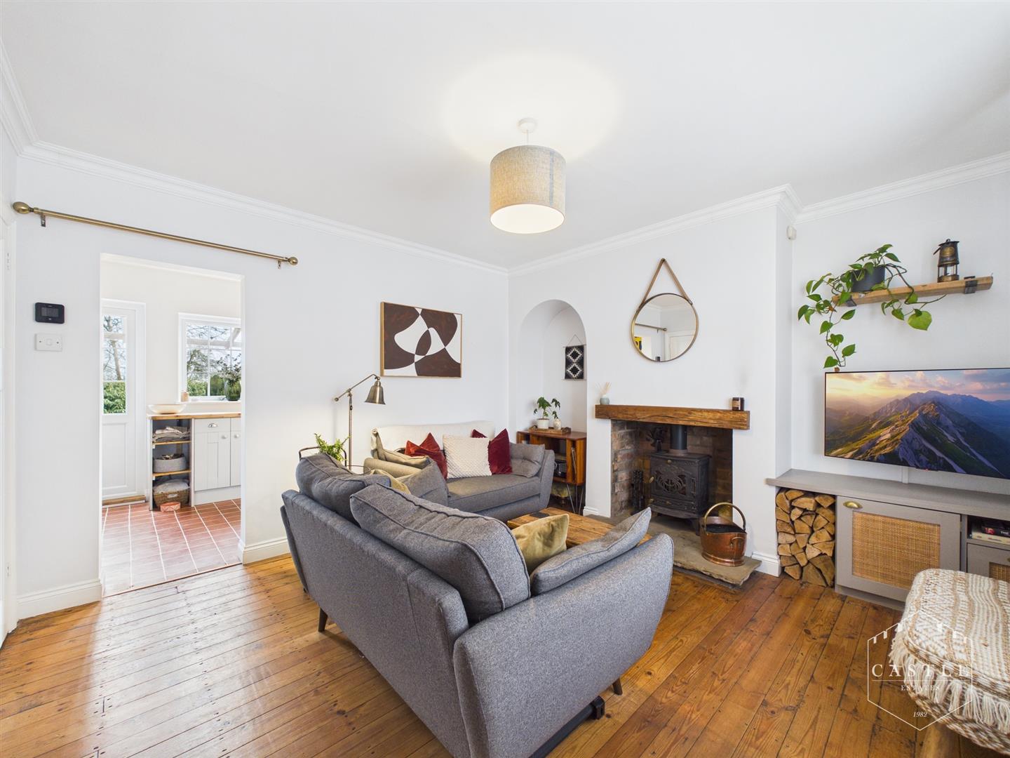 Lounge - 3.61m x 3.43m (11'10 x 11'3) - having upvc double glazed window to front feature log burning stove with wooden beam over, wood strip flooring, concertina style central heating radiator, tv aerial point, coved ceiling and under stairs storage cupboard.
