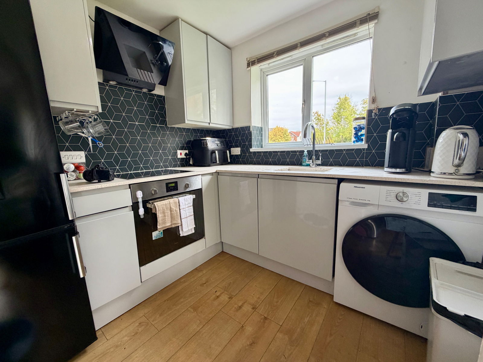 - Grey gloss fitted kitchen