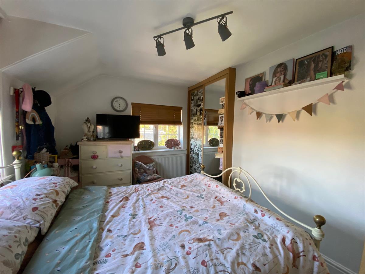 Generous double room fitted with a double wardrobe with mirrored sliding doors, loft access point. uPvc double glazed Georgian bar window to side and front elevations. Double panelled radiator.