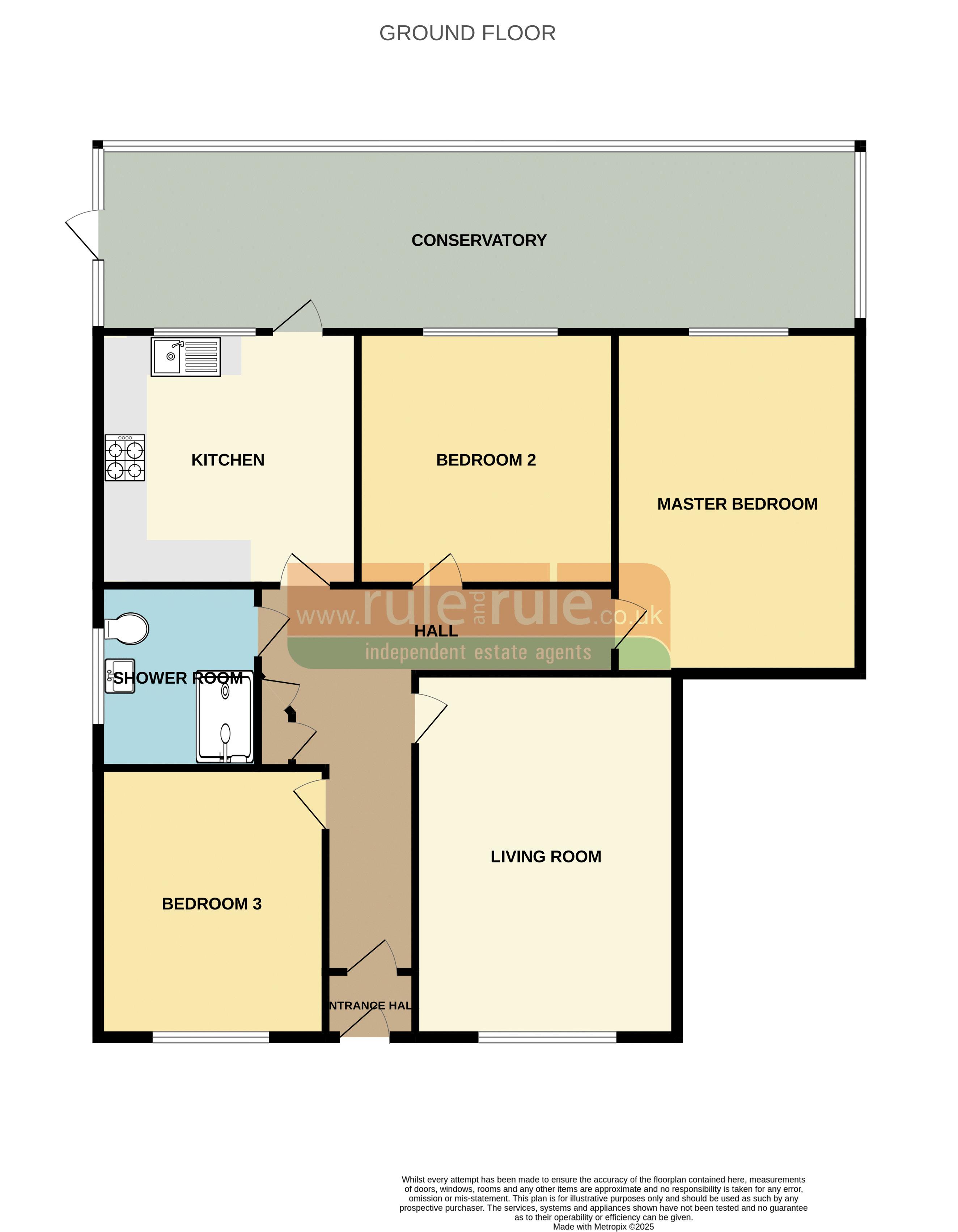 Inside, the property features gas-fired central heating, uPVC double glazing, a modern fitted kitchen with built-in oven and hob, and a fresh white shower suite. A full-width rear conservatory offers additional living space, perfect for relaxing or entertaining.