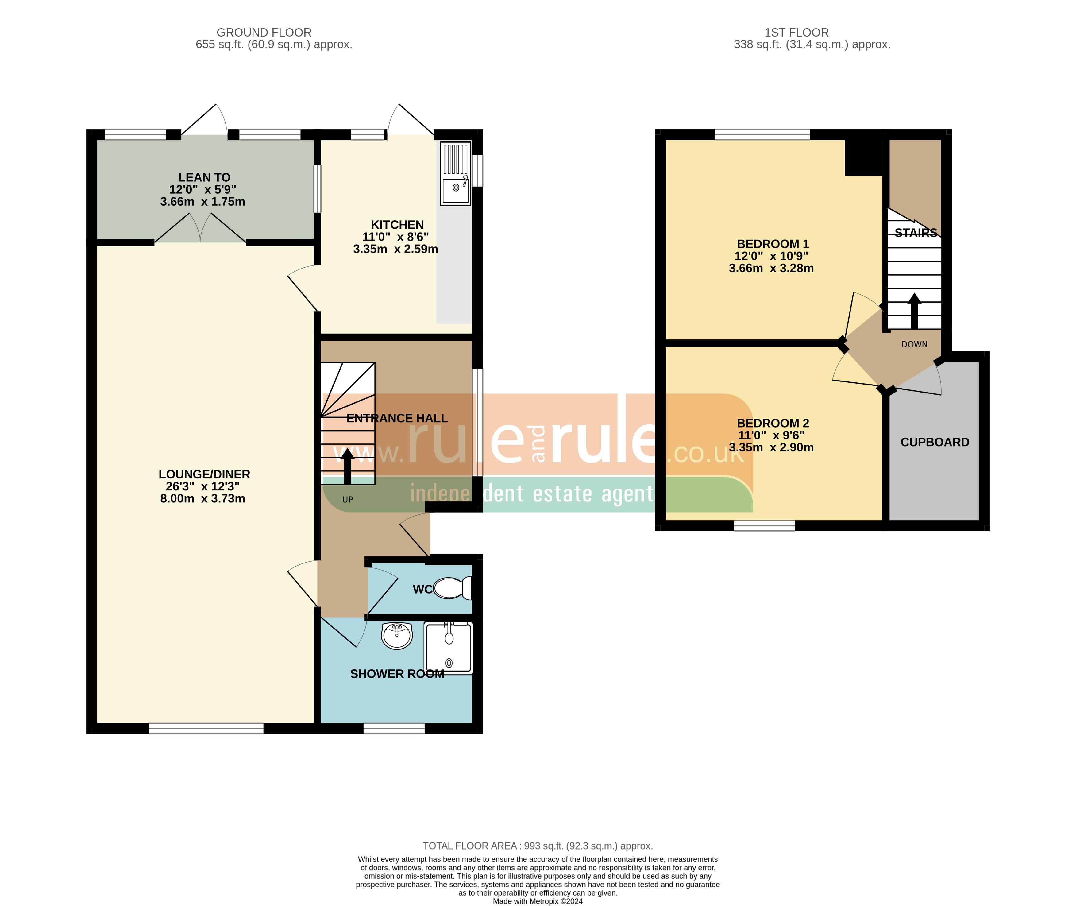 With a little imagination and bit of work this property could be a good sized family home. The ground floor comprises of a good sized lounge/diner, kitchen, toilet and a shower room. On the 1st floor there are 2 bedrooms and ample storage under the eaves.