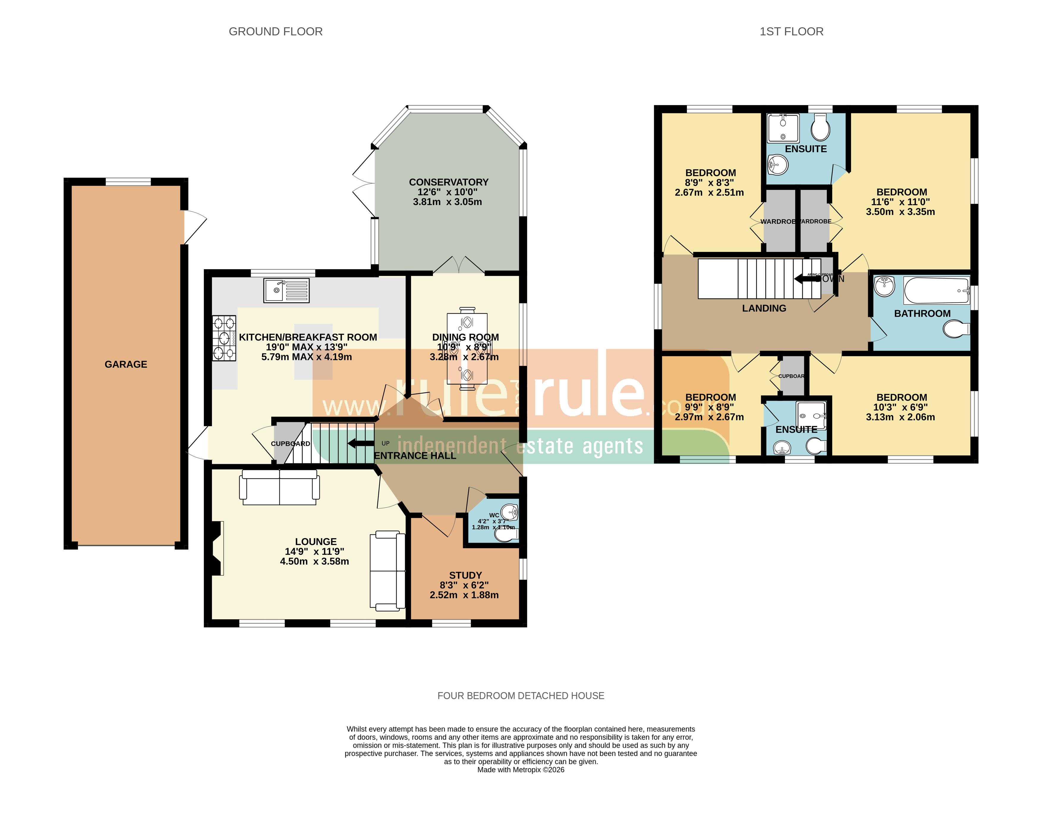 Upstairs, you’ll find four good-sized bedrooms, two of which enjoy their own en-suite shower rooms, along with a modern family bathroom.