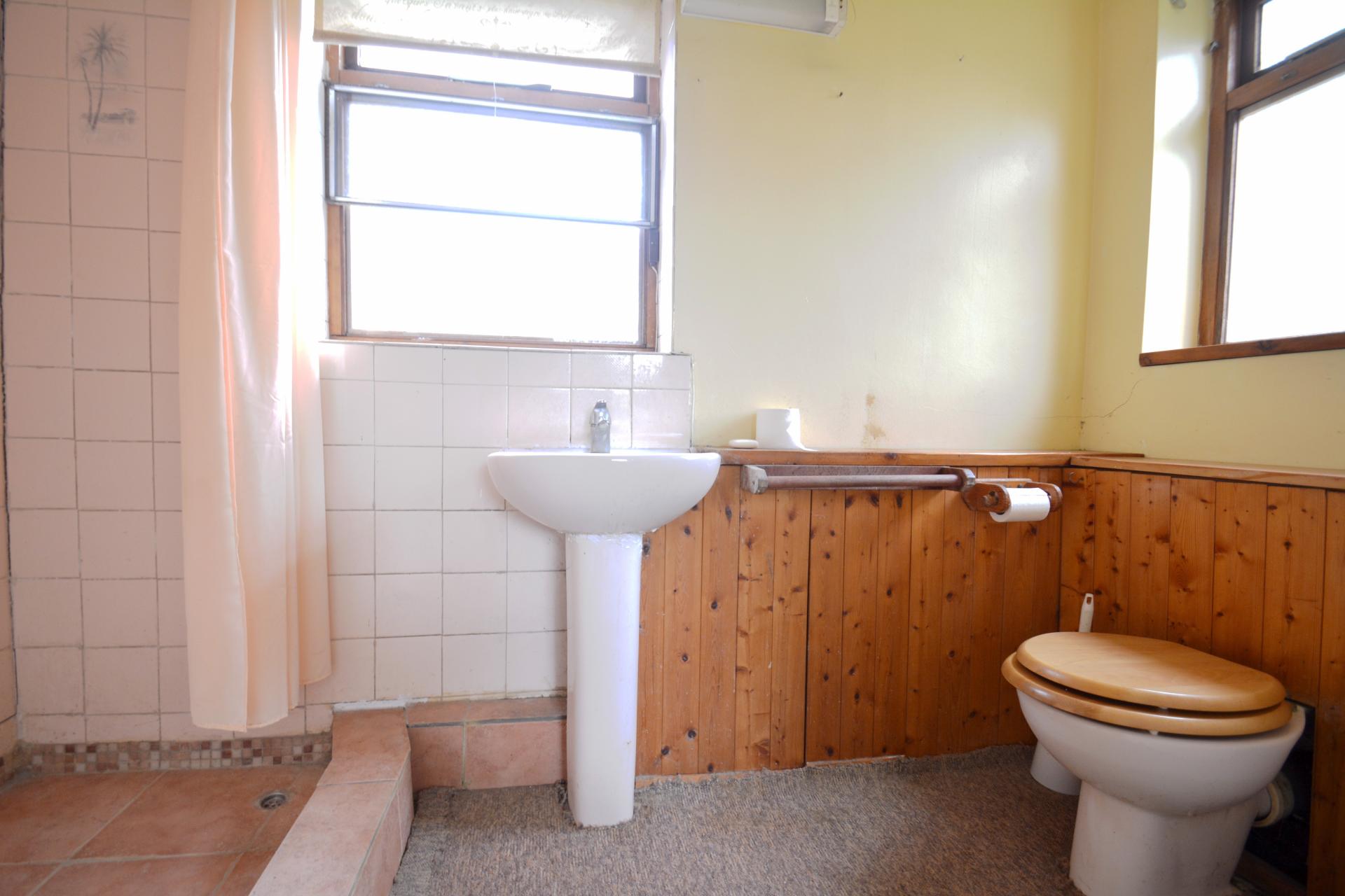Tiled shower, wash hand basin, 2x double glazed window.