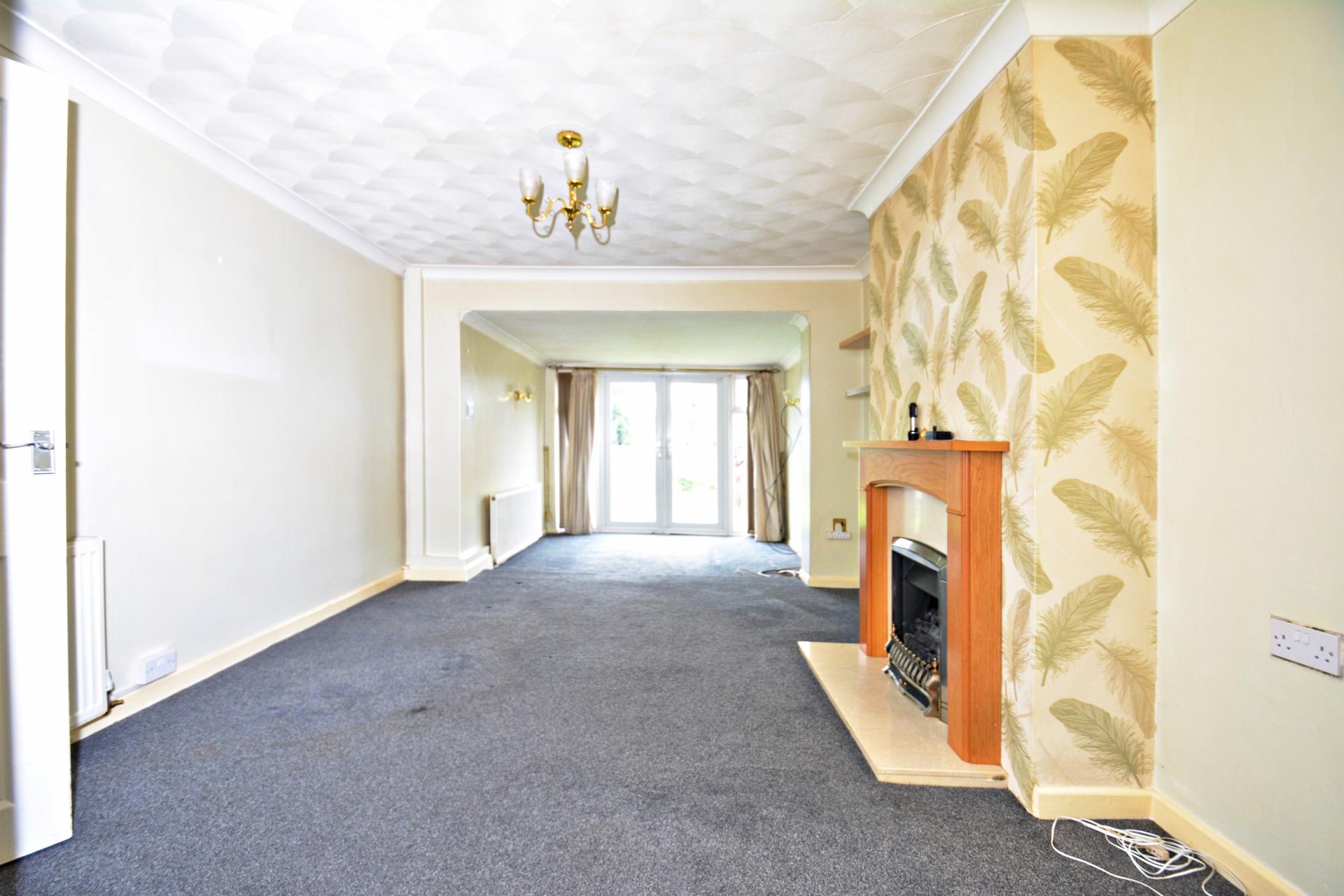 Carpeted floor, radiator panel x2, electric fireplace, double glazed French doors to garden, power points.