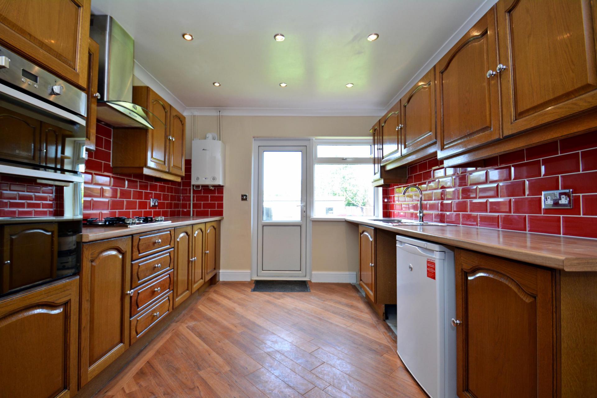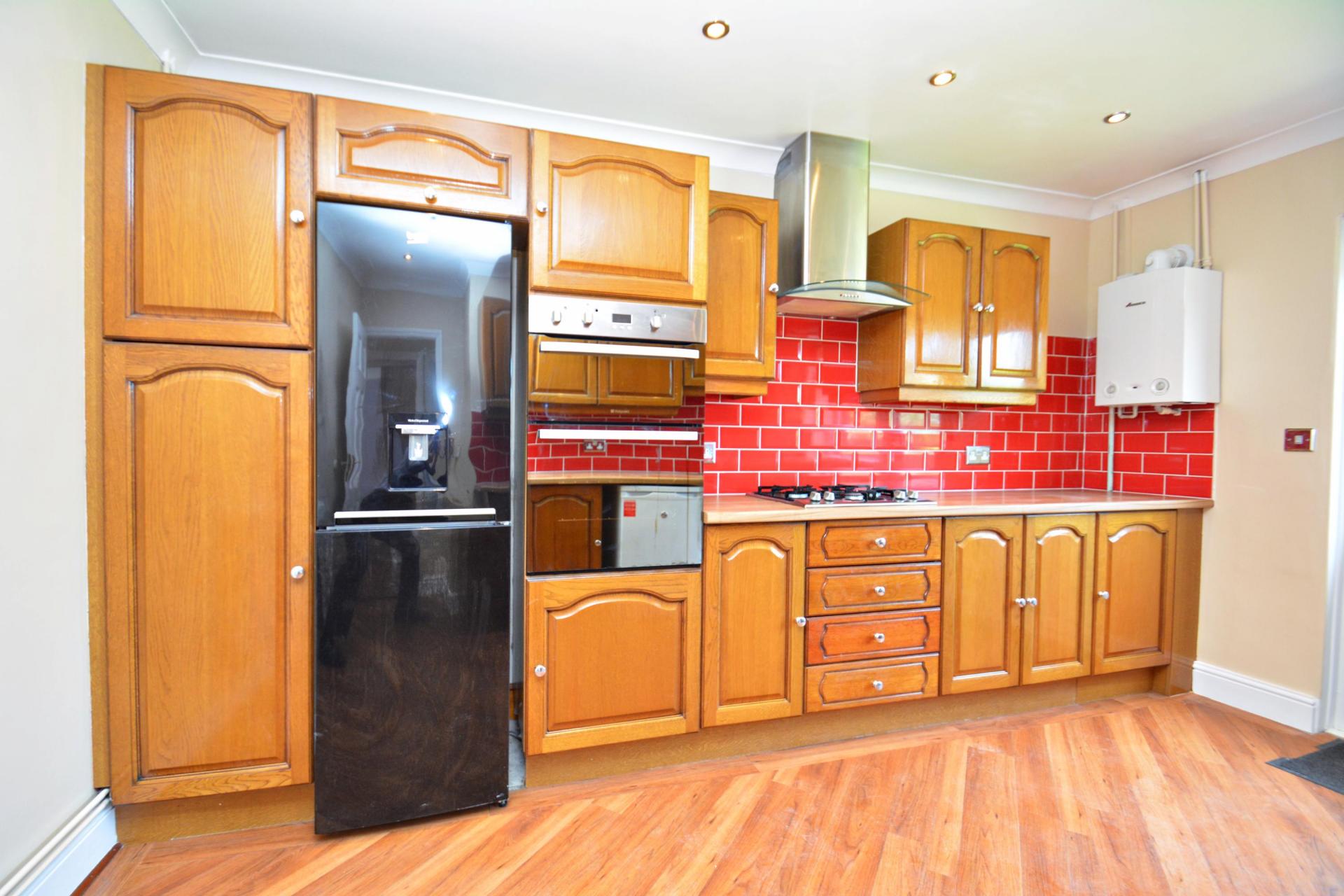 - Oak fitted kitchen with built in double oven and hob