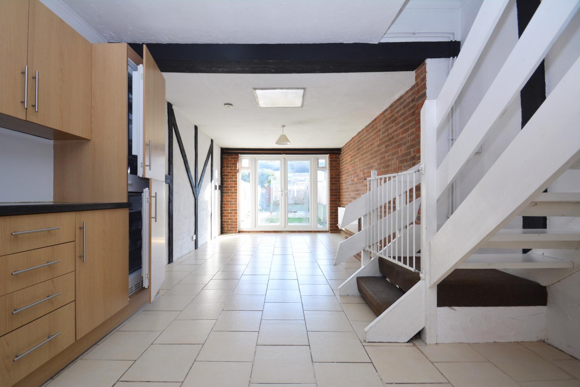 Wall and floor cabinets as fitted, stainless steel sink unit, work surface space, stairs to first floor, tiled flooring, double glazed patio doors to garden, radiator panel, power points.