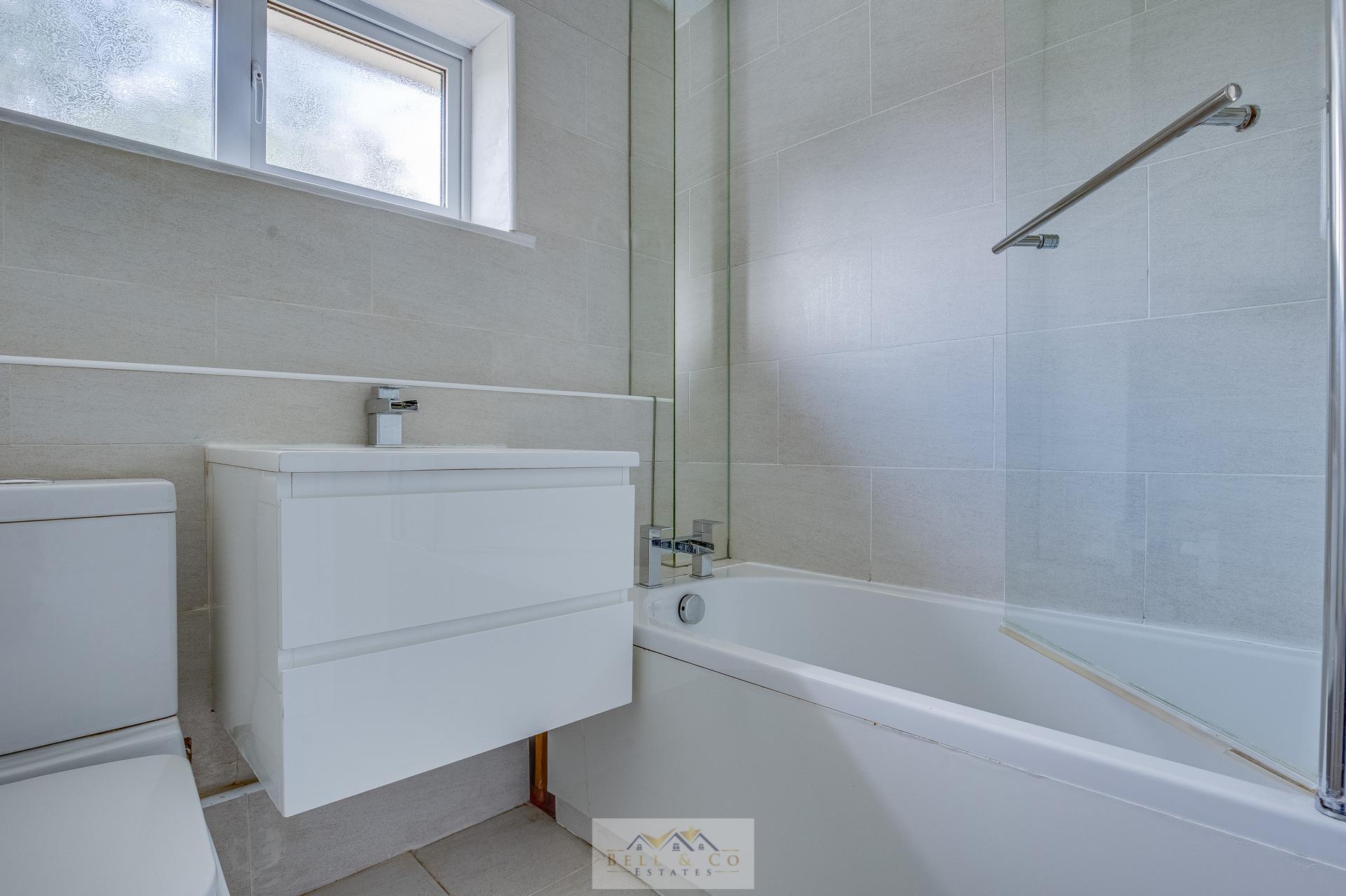 Upstairs, the property offers three bedrooms. The principal bedroom is a good-sized double with fitted wardrobes. There are two further bedrooms-ideal for children, guests, or a home office, one with built in cupboard plus a modern bathroom fitted with a three-piece suite.