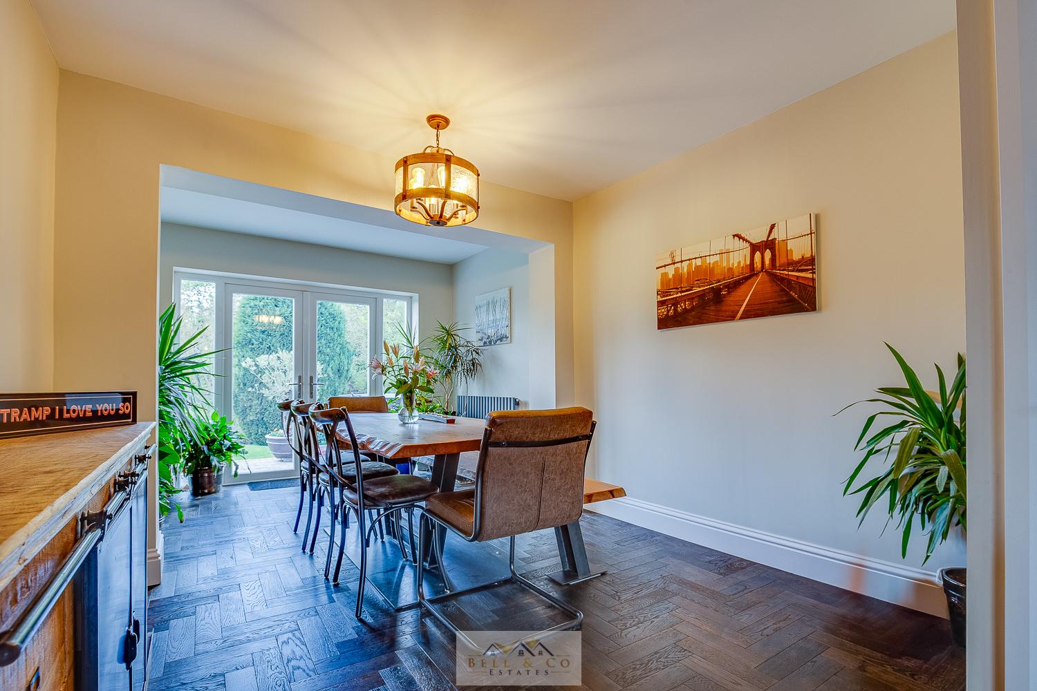 - Multiple living spaces including a dining room, sitting room, and large lounge