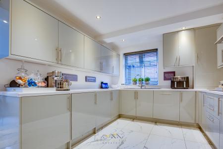 KITCHEN 16' 10" x 10' 3" (5.13m x 3.12m) Modern fitted kitchen, featuring sleek gloss units and integrated appliances, opening seamlessly into the dining area.
