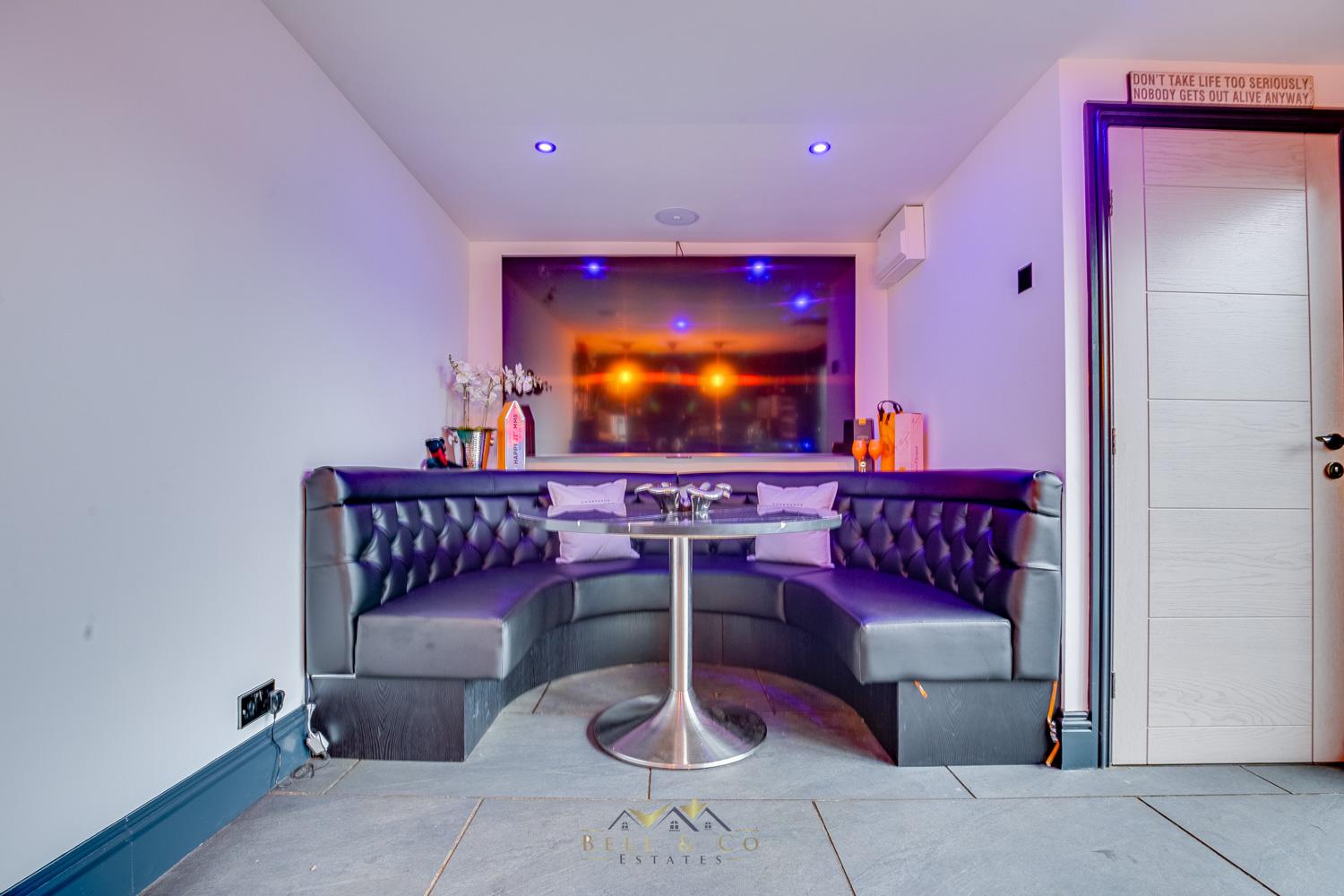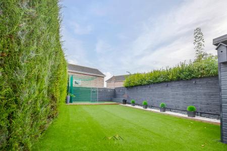 The gated access leads to the enclosed rear garden, which features a beautiful patio area, a garden room currently used as a bar with its own WC, an outdoor BBQ area, a shed, and artificial grass, making this space perfect for relaxing or hosting with family or friends.