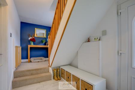 Upstairs are three well-proportioned bedrooms, the master bedroom housing fitted wardrobes, and a stylish family bathroom complete with shower over bath, wash basin and WC.