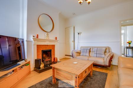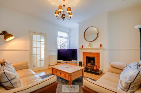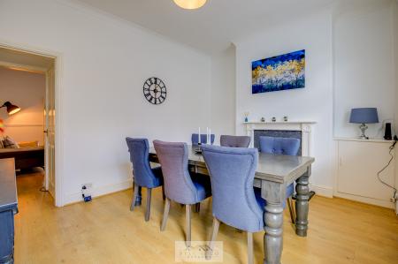 A further spacious reception room with open fire and open-plan to the kitchen, creating the ideal space for entertaining.